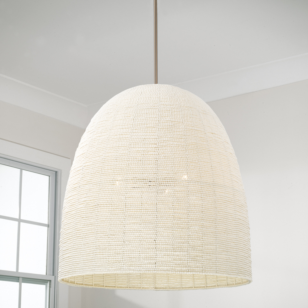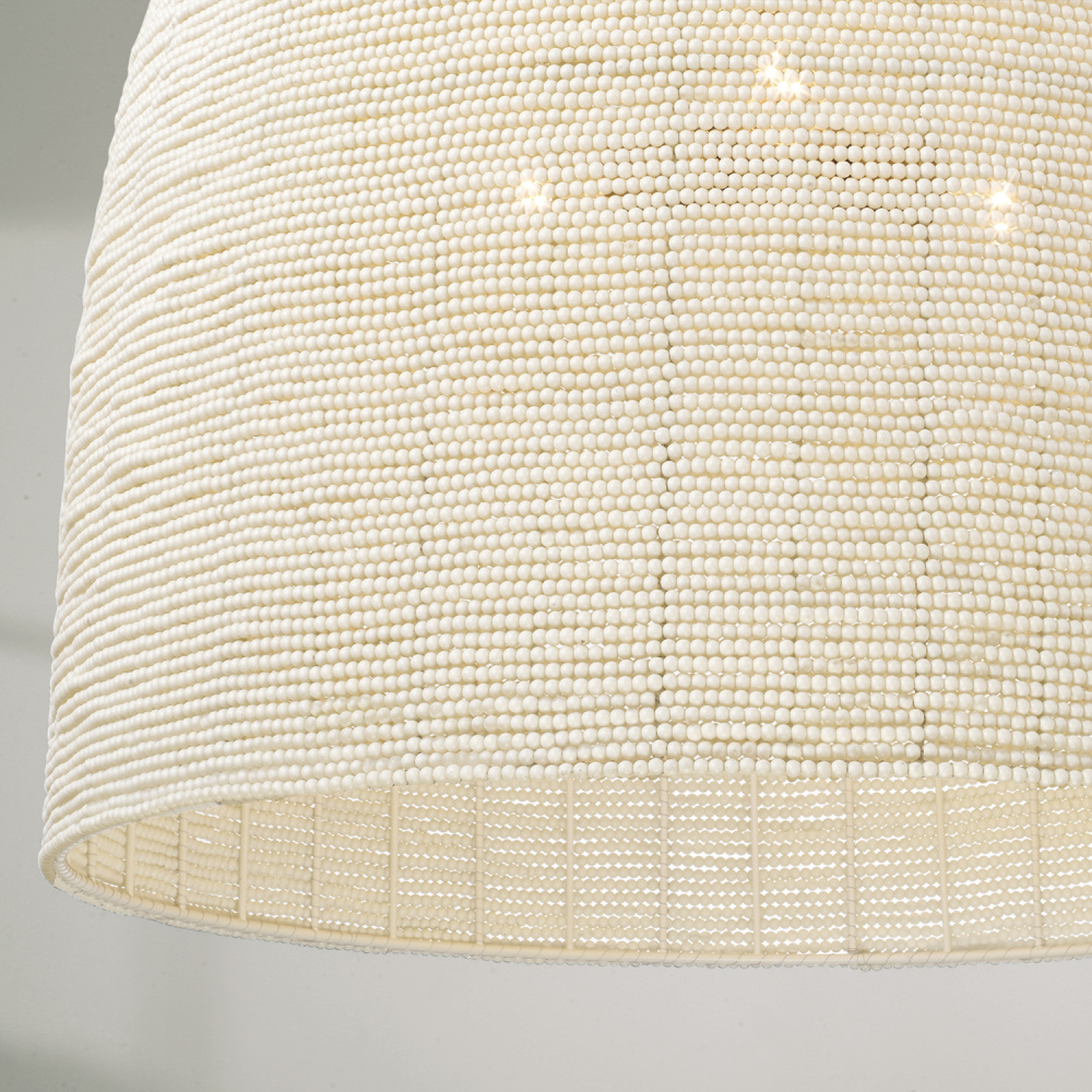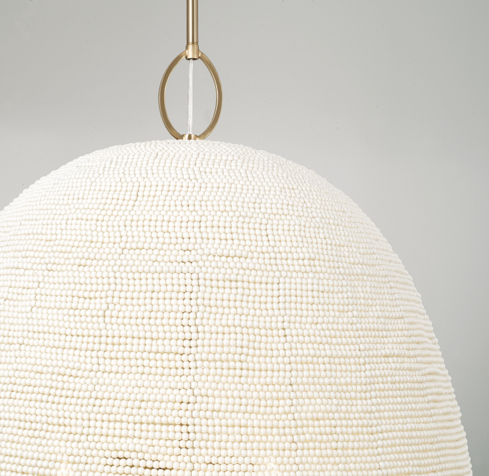 Bring a stunning display of artisan style to any space with the Natalia Large Pendant. Beaded by hand into a beautiful dome silhouette, this luminaire strikes a delicate balance of intricate and robust. For an extra tailored touch, each fixture comes with an optional oversized loop accent at the top. Finished in Aged Brass for timeless shine.