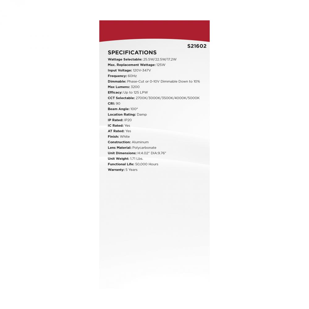 Field Selectable - 5 CCT and 3 Wattage