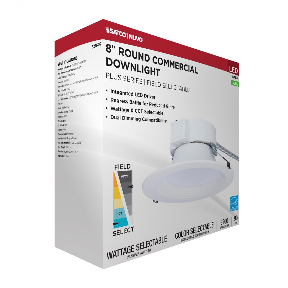 25.5W Field Selectable LED 8-Inch Commercial Downlight; Dual Dimming; Round; 120-347 Volt