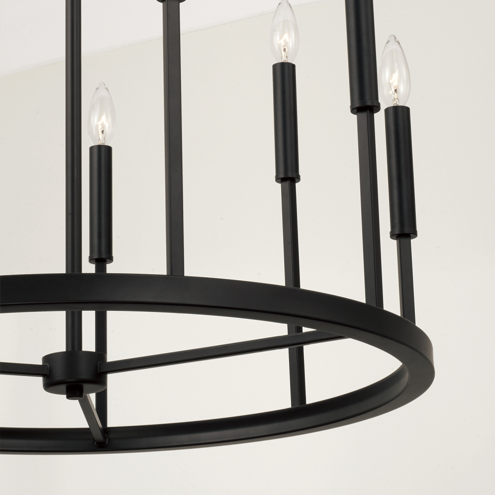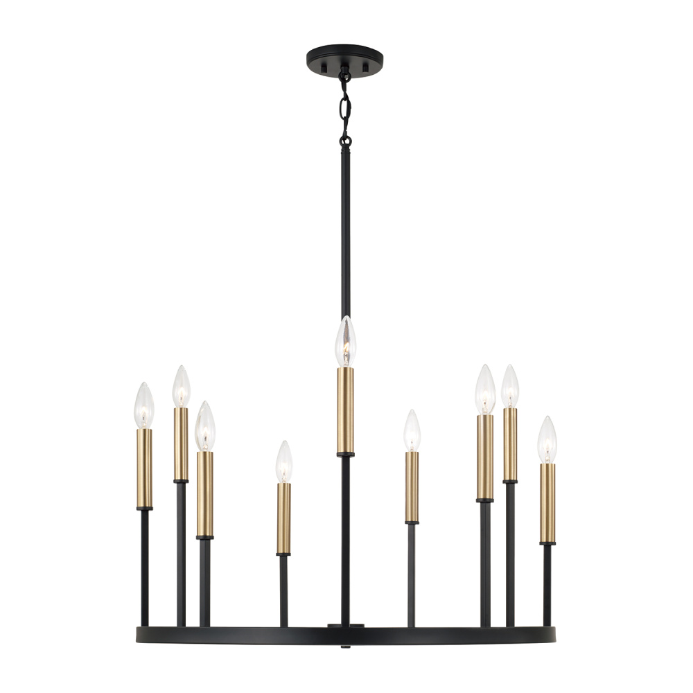Grounded in a dark Espresso finish, the Davis 26 inch Small Chandelier creates handsome, tailored style with clean lines and a classic ring silhouette. The cylindrical candle sleeves are easy to swap with both Espresso and Brass options included for a two-tone or monochrome look.