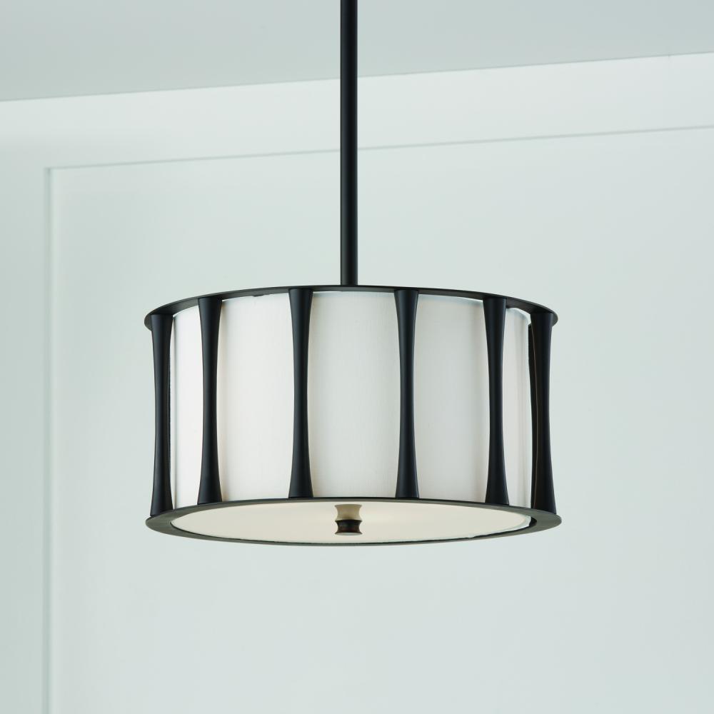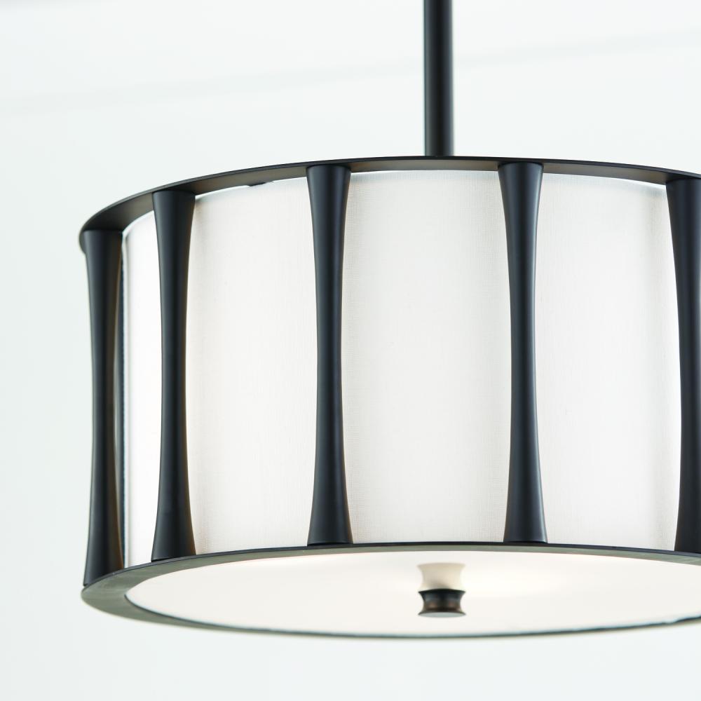 DIMENSIONS: Semi-Flush Height: 10.5 ''; Pendant Body Dimensions: 15"W x 9"H; Max Hanging Height: 60.5''; Includes 1' of chain and 10' of wire.