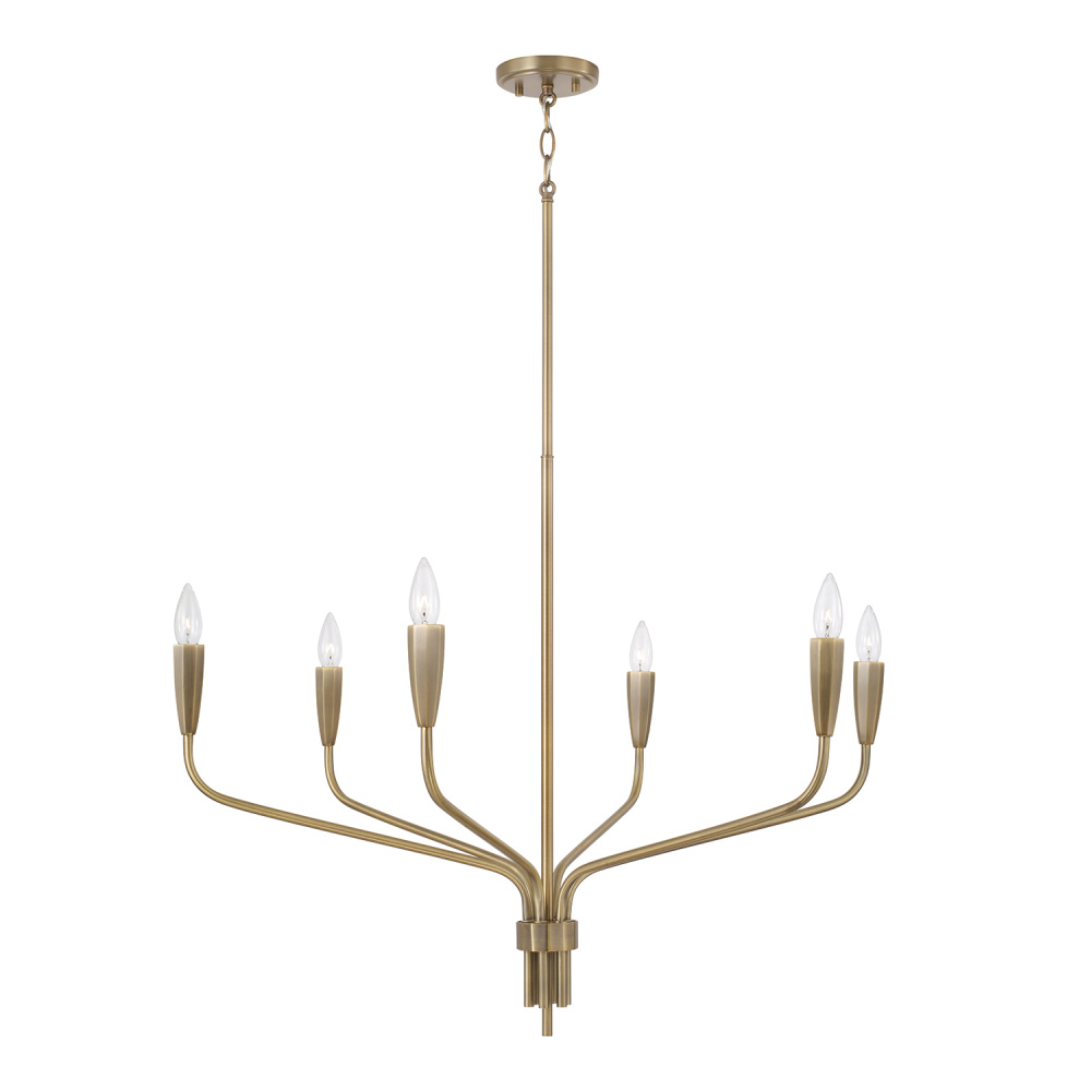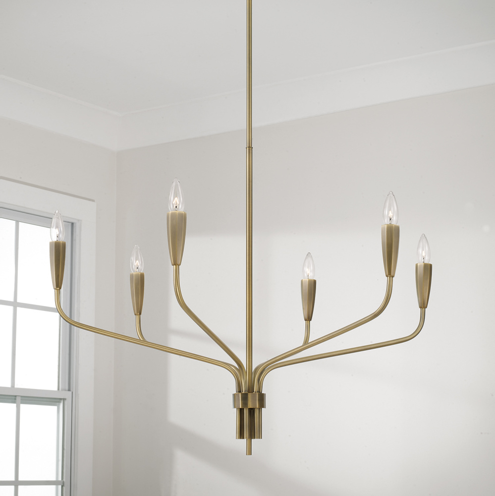 The Palmer Medium Chandelier is all about finesse. The rich, Antiqued Brass finish adds a layer of complexity, while the softly faceted candle sleeves reflect the light at different angles, creating beautiful dimension and intrigue. Each luminaire comes with both a gathered tail and simple finial option for striking style that offers more than meets the eye.