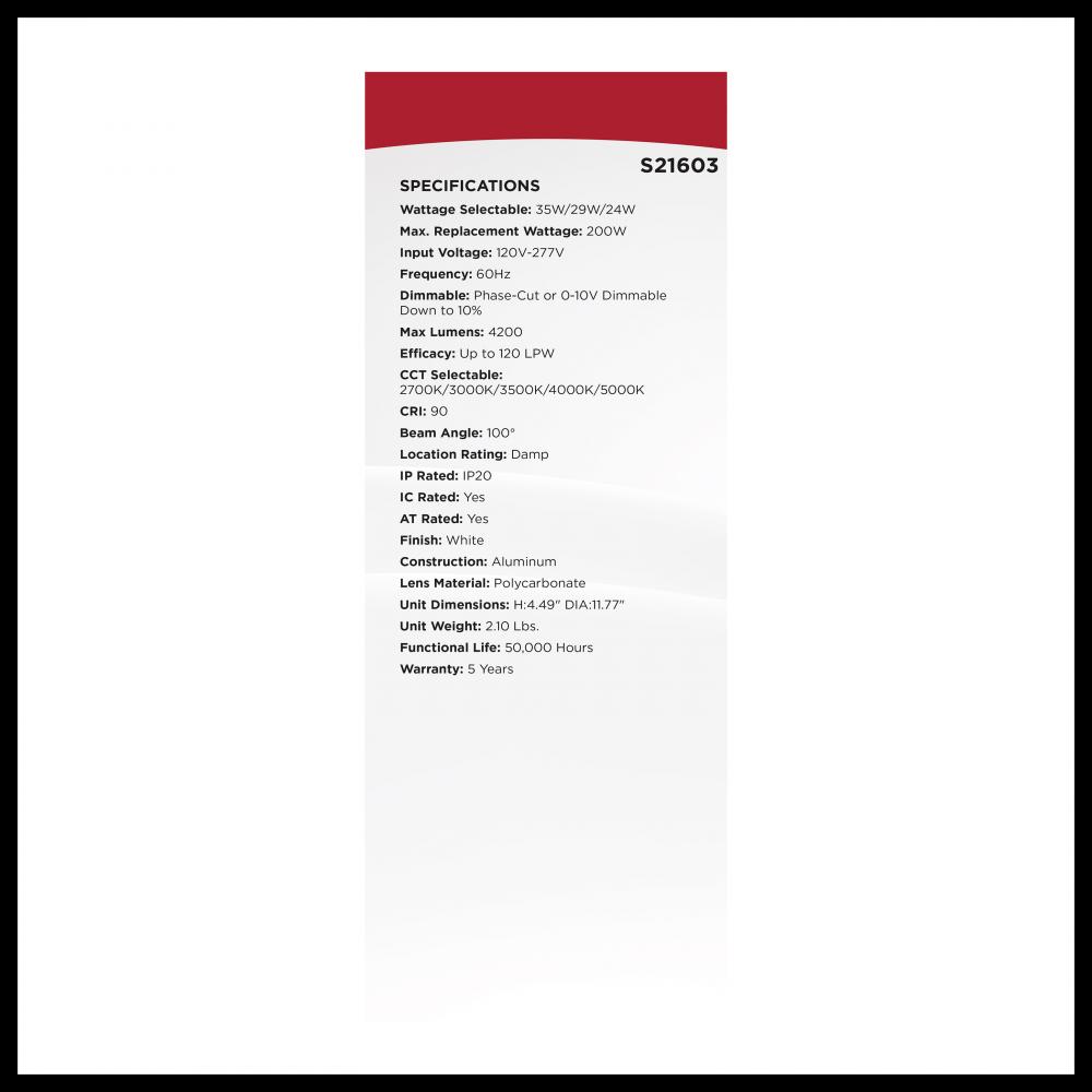 Field Selectable - 5 CCT and 3 Wattage