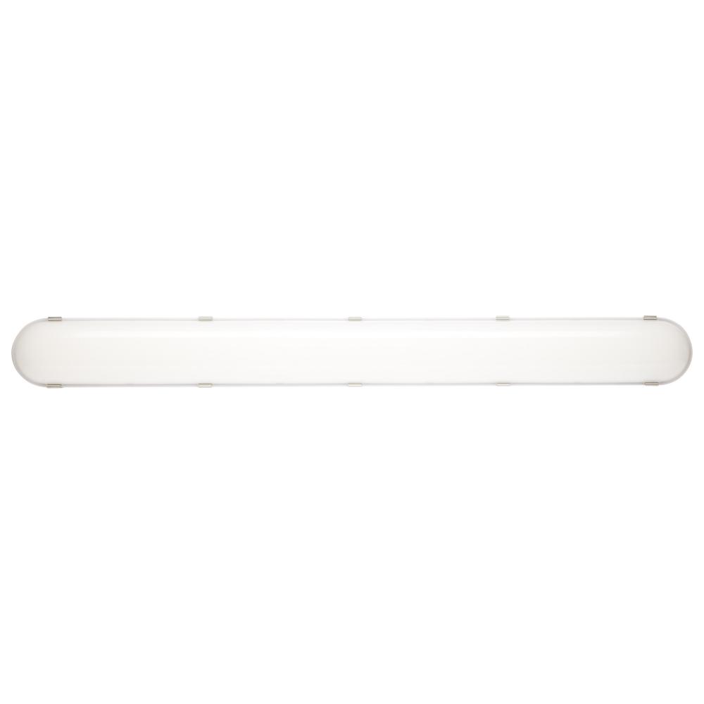 The SATCO NUVO 65-821R1 4 foot Vapor Proof LED fixture combines durability with versatility for challenging installations. With field-selectable wattages of 40W, 50W, or 60W and 3 CCT selectable options, it adapts to diverse lighting needs. Its rugged IP65