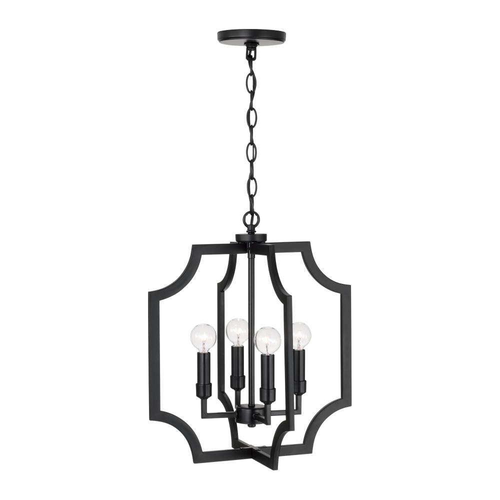 With the open, airy silhouette, the Courtney Lantern Foyer Pendant brings a charming aesthetic that doesn't overpower. The curved corners add chic appeal, while the Matte Black finish creates a bold, modern style.