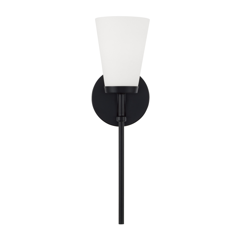 DETAILS: The tapered Soft White glass shade and clean lines create sophisticated style in a Matte Black finish.