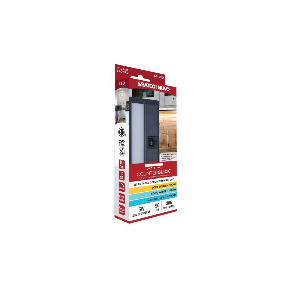5 Watt 8-Inch LED Under Cabinet; 30K/40K/50K CCT Selectable; Dark Bronze; 120 Volt