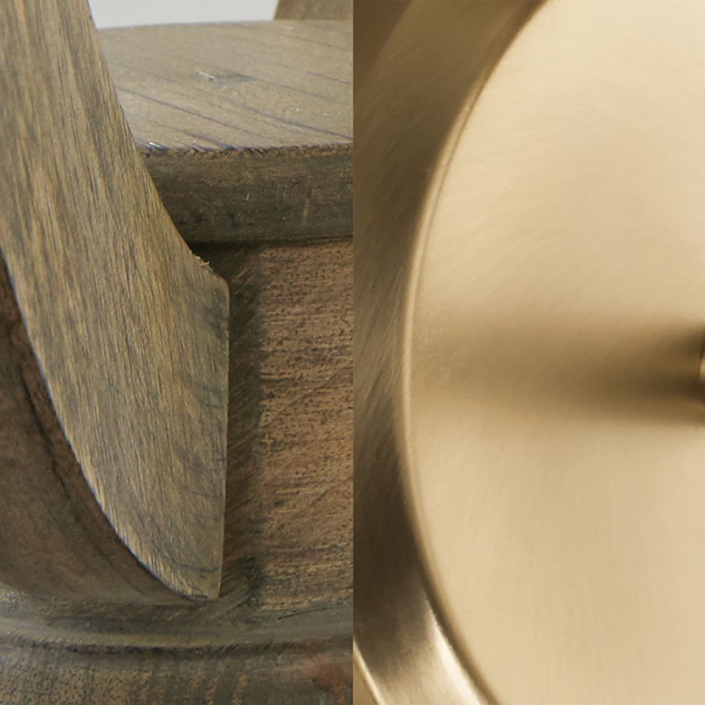 FINISH: A combination finish of a dark stained mango wood and the subtle sheen of a honey-gold tone.