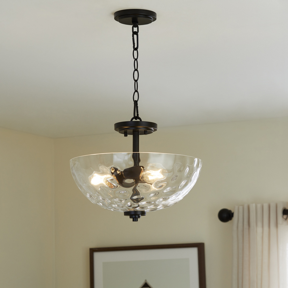 Quorum 2800-15-259 - ADAMS 15" CLEAR/HAMMERED DUAL MOUNT - MATTE BLACK