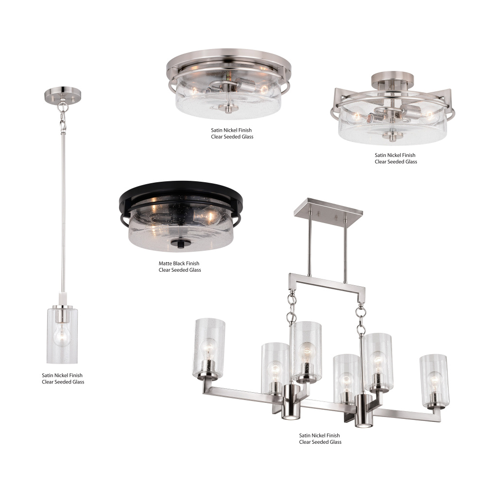 The Addison collection is a sleek, modern approach to lighting with a friendly flair. Flat metal arms finished in satin nickel partnered with cylinders of clear seeded glass bring high style and warmth to any interior space. Whether in your foyer, living or dining space, this collection is exclusively designed with your lighting needs in mind.