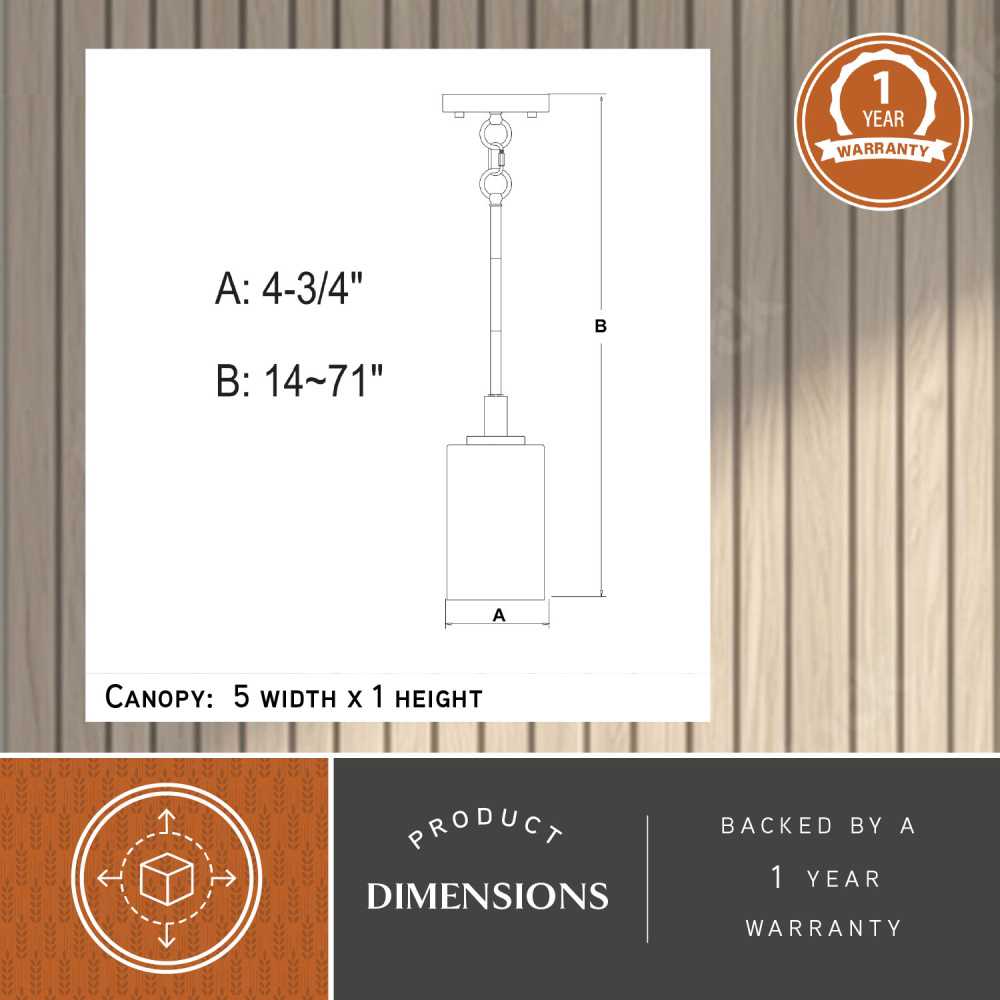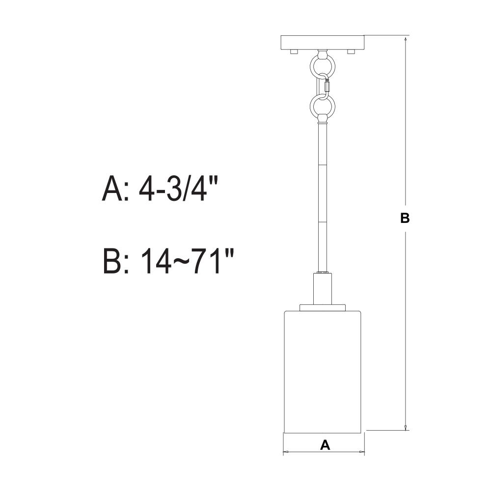 Adjustable height; 14-71 inches using 3 x 12-in, 1 x 6-in, 1 x 3-in of included down rods; sloped ceiling compatible
