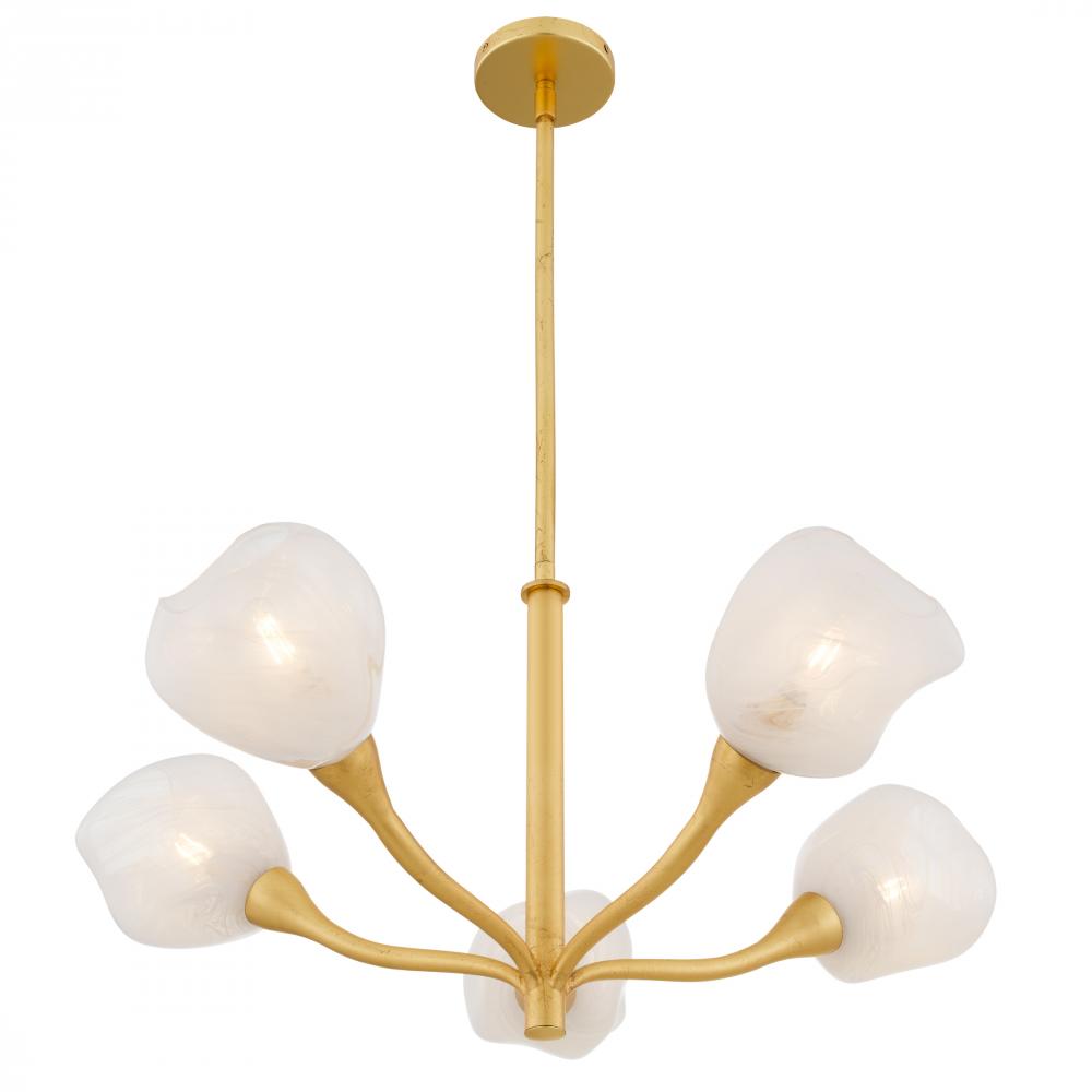 With soft curves and sculptural elegance, Adelyn captures the delicate beauty of flowers in bloom. Each glass shade is uniquely shaped, reminiscent of gently unfurling petals kissed by morning light. The rich gold leaf finish adds a warm, radiant glow, enh