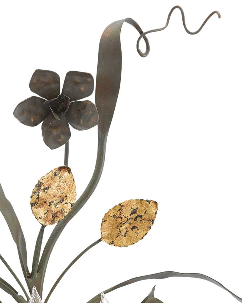 The Agave Americana Wall Sconce is a grand piece inspired by the Century plant of the American desert. Eight lights surrounded by clusters of faceted crystals bloom from its branches of hand-forged metal tubes that have been treated to a dark contemporary gold leaf finish. In our Marjorie Skouras Collection, we offer the Agave Americana in several finishes, and in a number of variations.