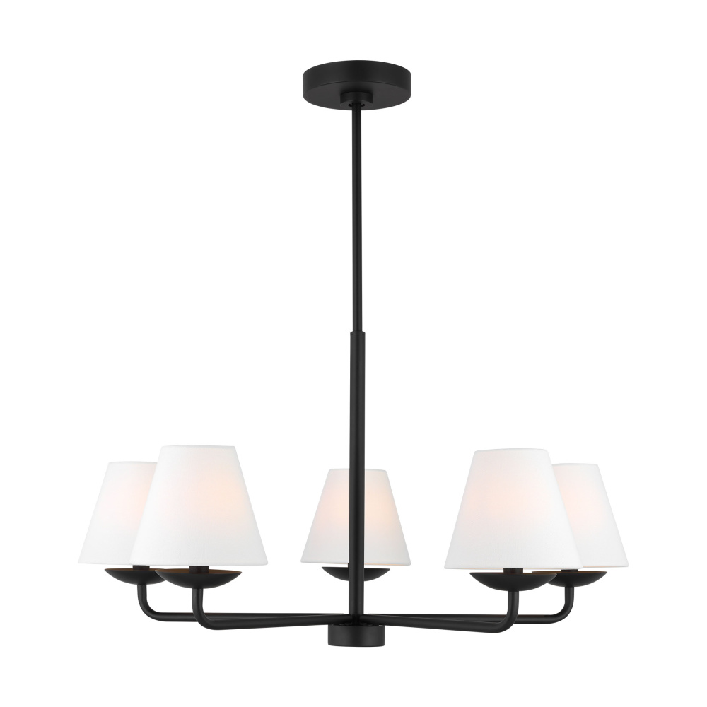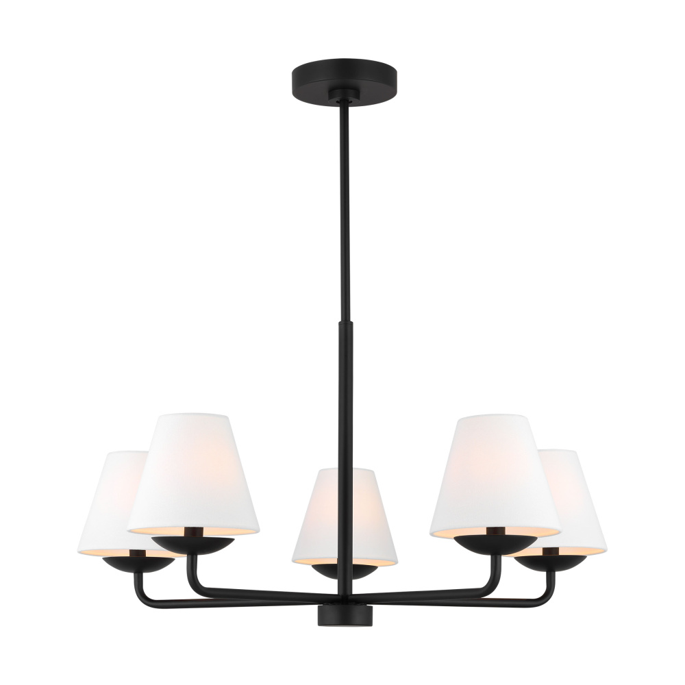 The Drew & Jonathan Albion series is the true definition of traditional meets contemporary. Cone-shaped fabric lampshades and sleek sweeping arms create a visually appealing look that adds a touch of elegance to your space. It is made of steel and features a classic silhouette with angled arms branching from a central rod. Each arm is topped with a candle-style sconce for 60W candelabra bulbs (sold separately), while small fabric drum shades diffuse light for a warm glow.