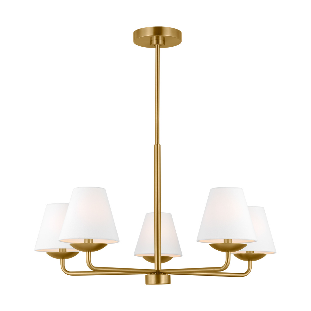 The Drew & Jonathan Albion series is the true definition of traditional meets contemporary. Cone-shaped fabric lampshades and sleek sweeping arms create a visually appealing look that adds a touch of elegance to your space. It is made of steel and features a classic silhouette with angled arms branching from a central rod. Each arm is topped with a candle-style sconce for 60W candelabra bulbs (sold separately), while small fabric drum shades diffuse light for a warm glow.