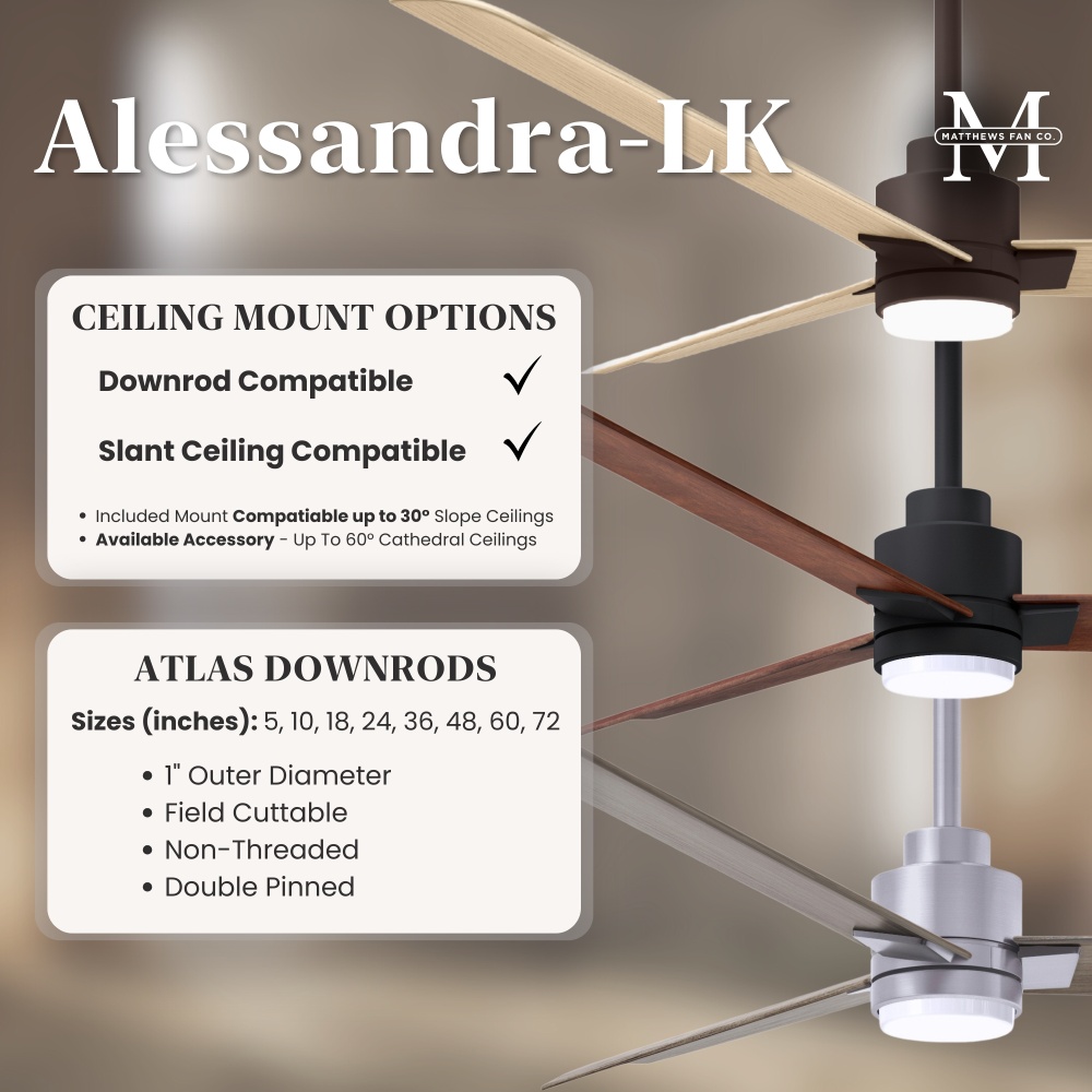 Minimal form with maximum efficiency. with a wide range of sizes, the Alessandra can accommadate any size space. This thoughtfully crafted and versatile fan will complement any aesthetic and improves the health and comfort of any room. Highly customizable, the Alessandra is available in 5 different body finishes, 7 blade options and even a color changeable light kit. Suitable for fully exposed outdoor areas. Backed by a limited lifetime warranty, our fans are of the highest quality and will dutifully perform for years to come.