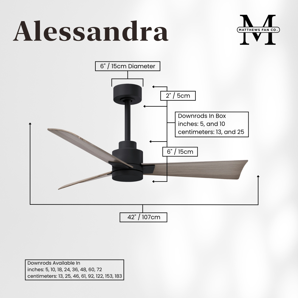 Alessandra - 42" Three Blade Transitional Ceiling Fan - Matte Black Finish - Gray Ash Tone Blade