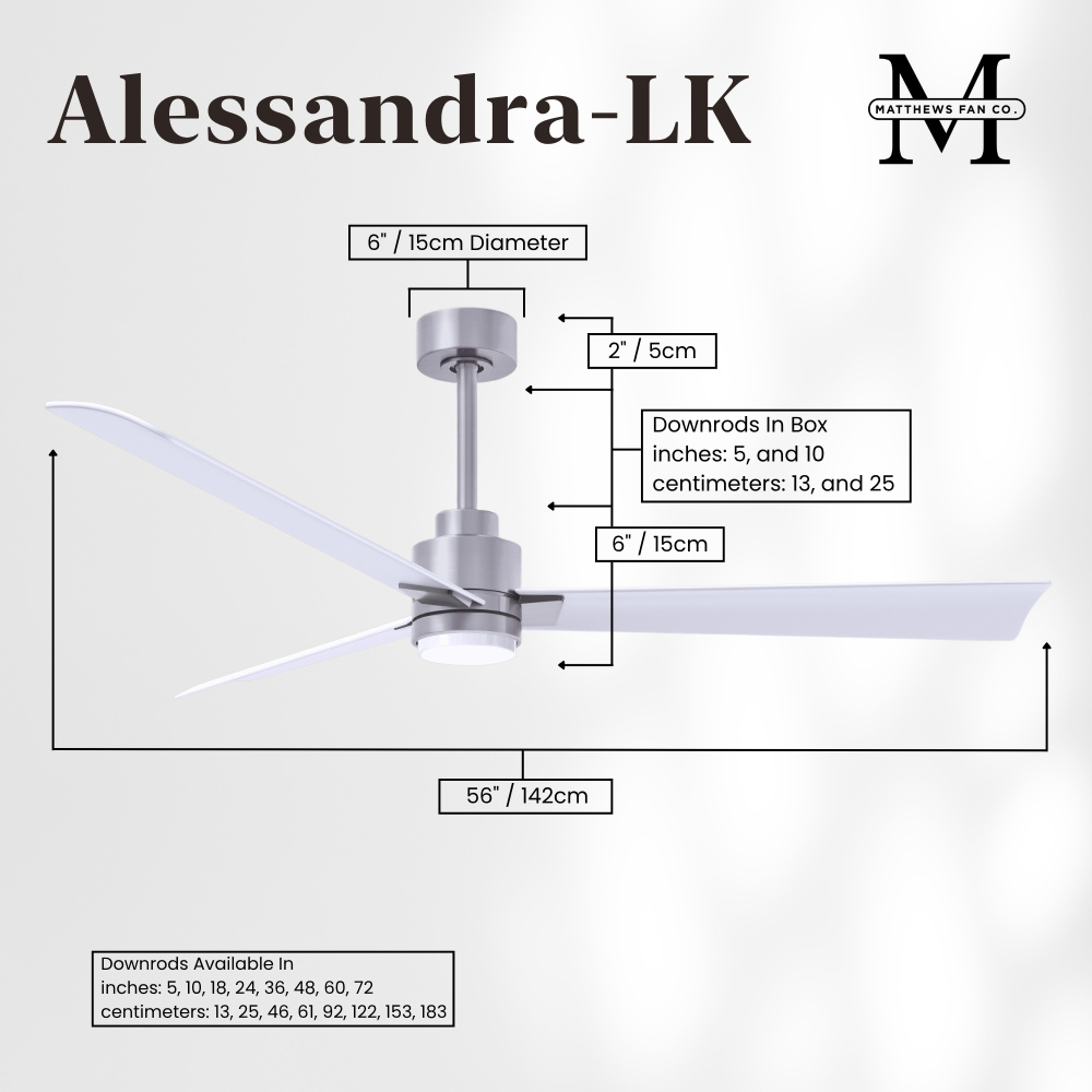 Minimal form with maximum efficiency. With a wide range of sizes, the Alessandra can accommadate any size space. This thoughtfully crafted and versatile fan will complement any aesthetic and improves the health and comfort of any room. Highly customizable, the Alessandra is available in 5 different body finishes, 6 blade options and even a color changeable light kit. Suitable for fully exposed outdoor areas. Backed by a limited lifetime warranty, our fans are of the highest quality and will dutifully perform for years to come.