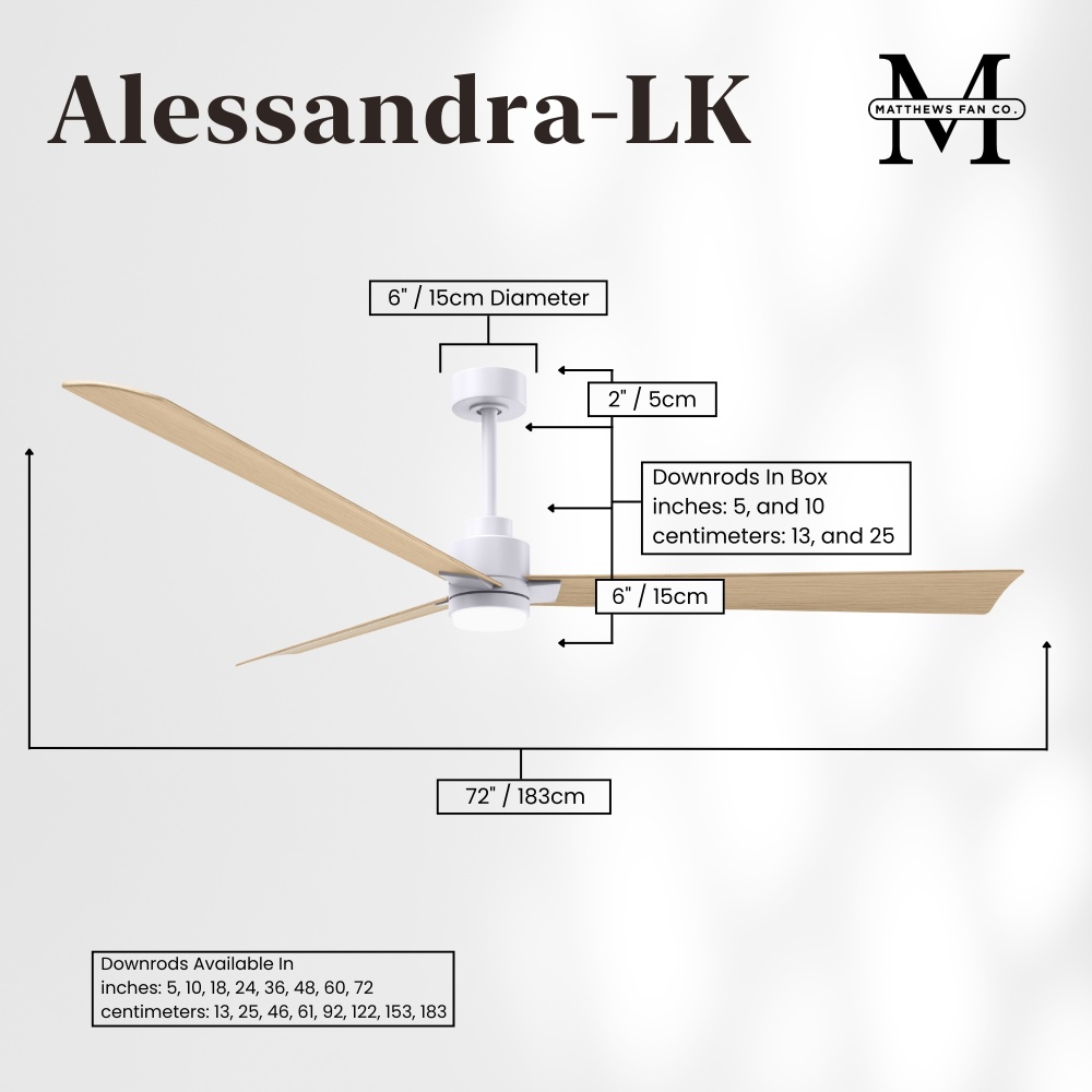 Minimal form with maximum efficiency. with a wide range of sizes, the Alessandra can accommadate any size space. This thoughtfully crafted and versatile fan will complement any aesthetic and improves the health and comfort of any room. Highly customizable, the Alessandra is available in 5 different body finishes, 7 blade options and even a color changeable light kit. Suitable for fully exposed outdoor areas. Backed by a limited lifetime warranty, our fans are of the highest quality and will dutifully perform for years to come.