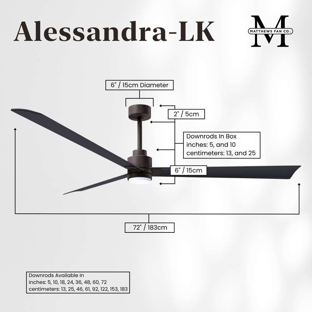 Matthews Fan Company AKLK-MWH-BN-72 - Alessandra - 72" Three Blade Transitional Ceiling Fan - 5CCT Integrated LED - Matte White Finish