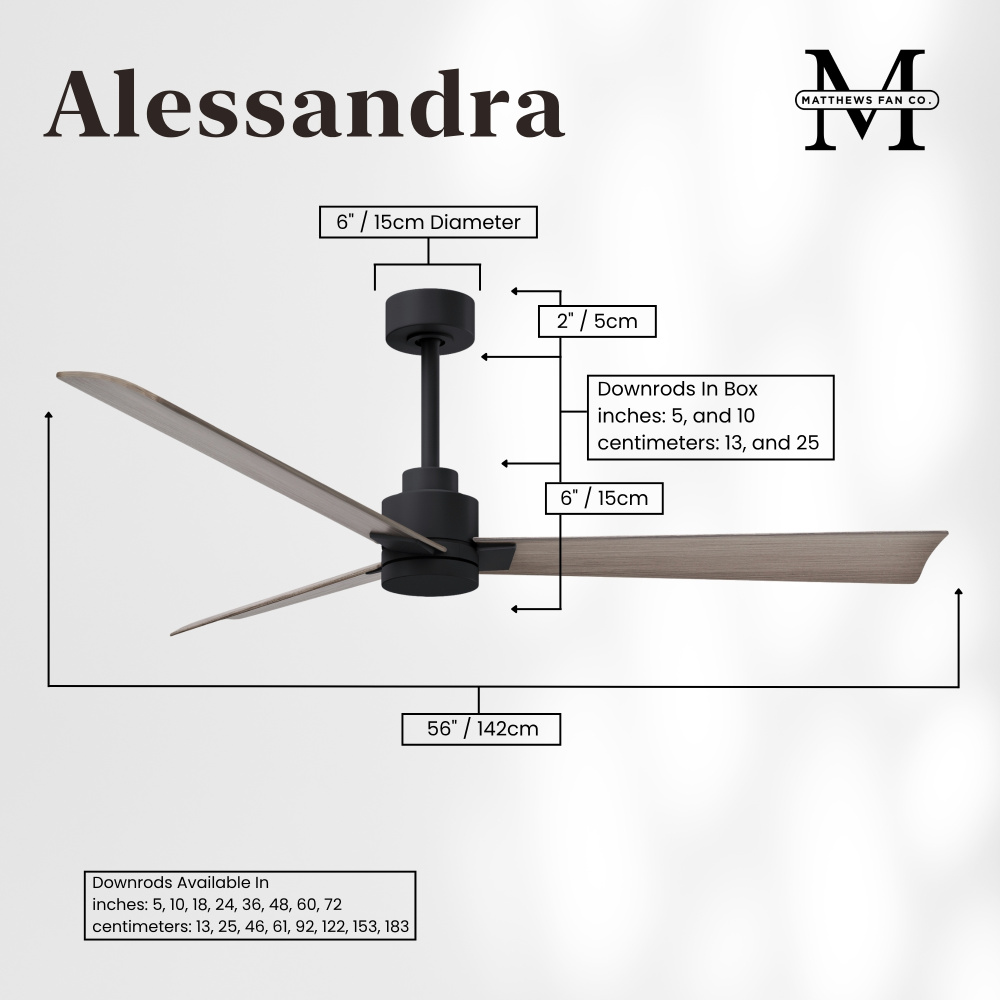 Minimal form with maximum efficiency. With a wide range of sizes, the Alessandra can accommadate any size space. This thoughtfully crafted and versatile fan will complement any aesthetic and improves the health and comfort of any room. Highly customizable, the Alessandra is available in 5 different body finishes, 6 blade options and even a color changeable light kit. Suitable for fully exposed outdoor areas. Backed by a limited lifetime warranty, our fans are of the highest quality and will dutifully perform for years to come.