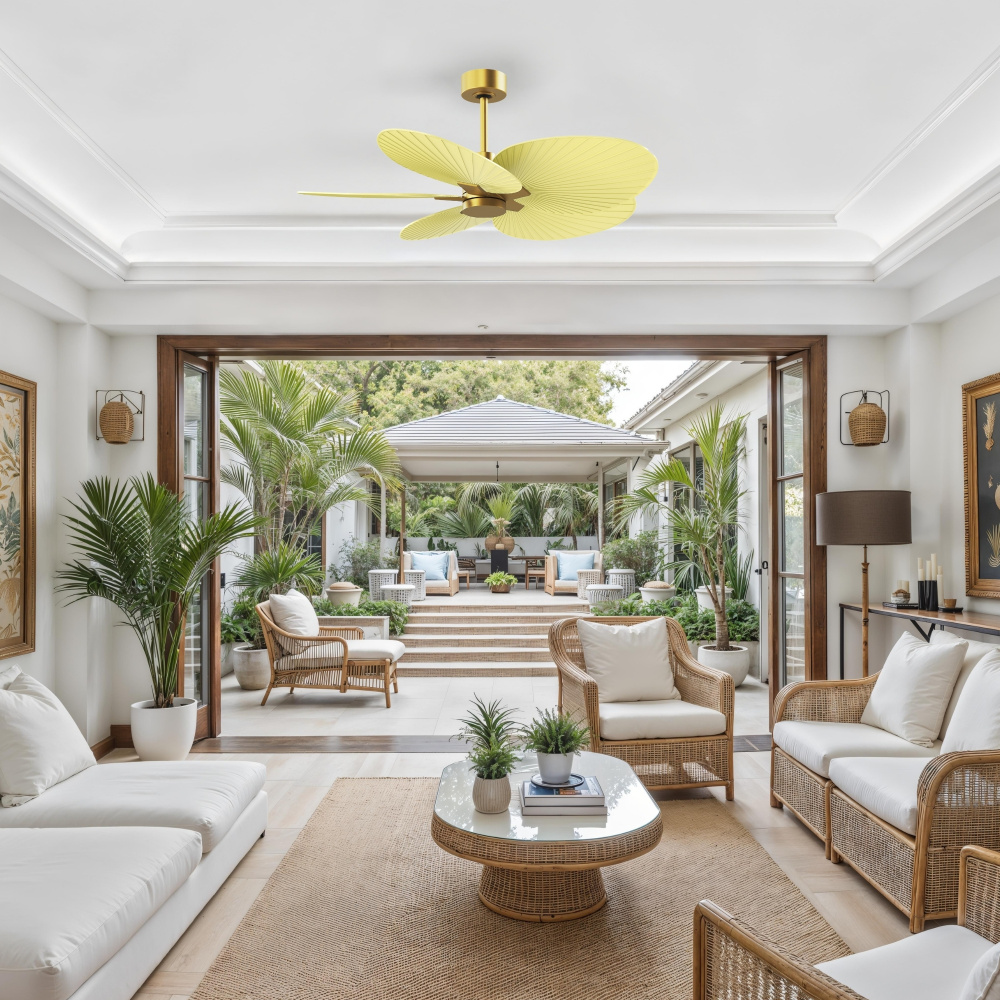 Alessandra Tropical - Five Blade Ceiling Fan - Brushed Brass Finish - Light Yellow Blades