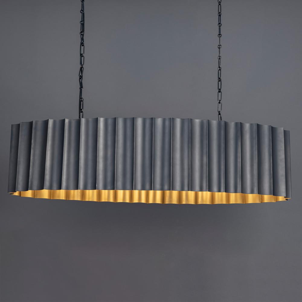 With graceful repetition and bold geometry, the Allegra collection strikes a balance between softness and structure. Scalloped metal drum shades form rhythmic silhouettes that feel both architectural and graceful. Offered in a range of pendant sizes, an AD
