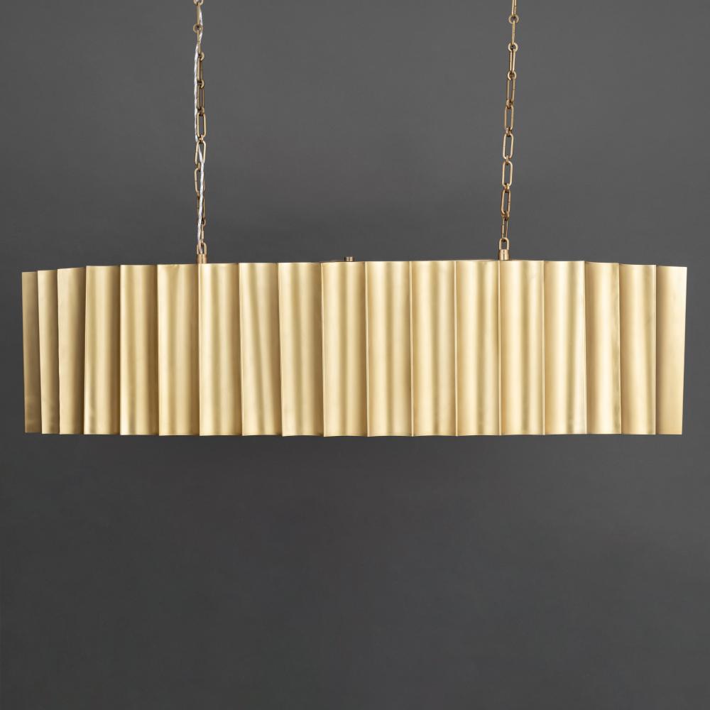 With graceful repetition and bold geometry, the Allegra collection strikes a balance between softness and structure. Scalloped metal drum shades form rhythmic silhouettes that feel both architectural and graceful. Offered in a range of pendant sizes, an AD