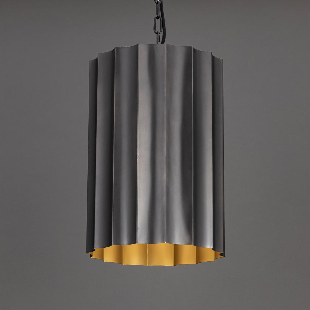 With graceful repetition and bold geometry, the Allegra collection strikes a balance between softness and structure. Scalloped metal drum shades form rhythmic silhouettes that feel both architectural and graceful. Offered in a range of pendant sizes, an AD