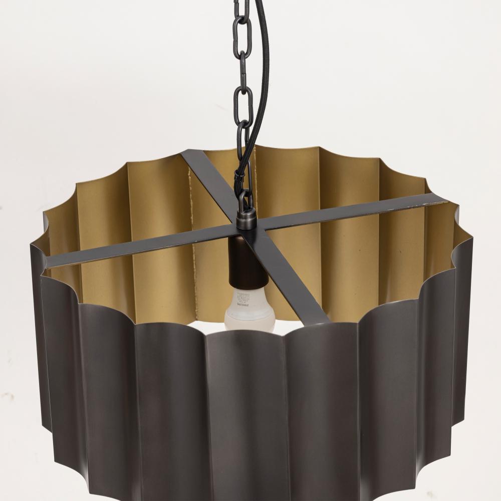 With graceful repetition and bold geometry, the Allegra collection strikes a balance between softness and structure. Scalloped metal drum shades form rhythmic silhouettes that feel both architectural and graceful. Offered in a range of pendant sizes, an AD
