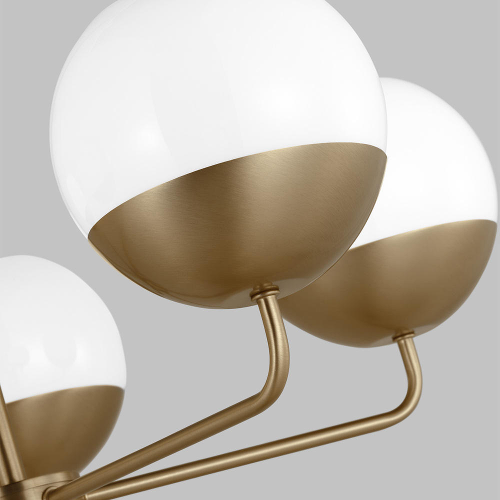 Alvin embodies a classic Midcentury design. The arms of the chandelier are on a pivot to direct light in any specific direction. The brushed nickel silver, Midnight Black or Satin Brass, and opaque white combine creating an elegant color palette that will work well in almost any décor.
