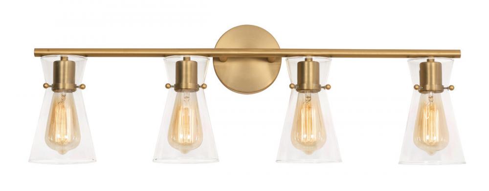 Amanda 4 Light Vanity, Satin Brass, Clear