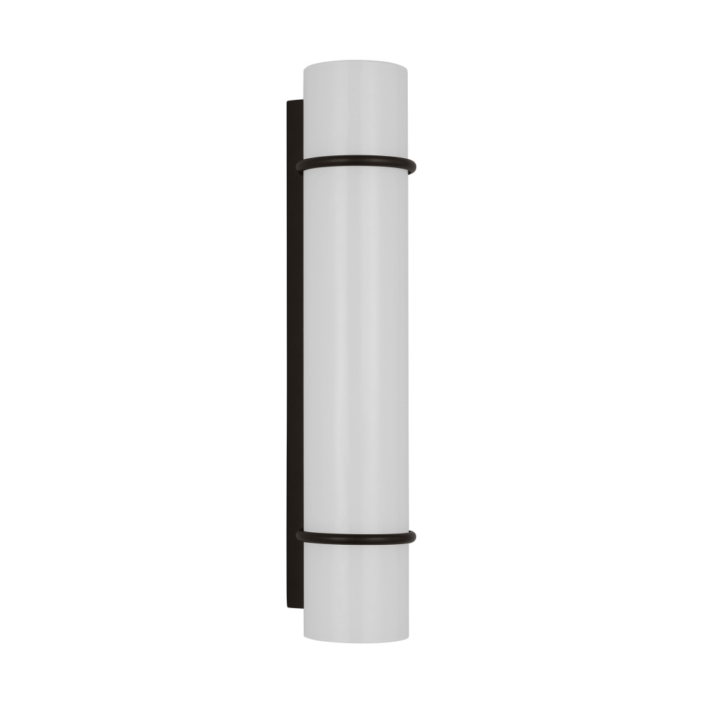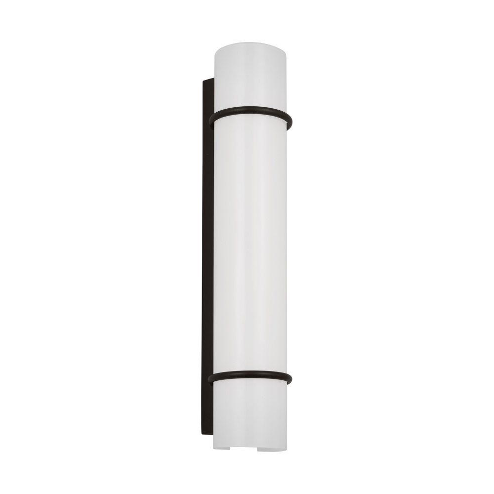 The Amelie Integrated LED vanity series by Chapman & Myers is a simplified cylindrical linear bath light with two metal rings inspired by a vintage cuff bracelet. Each sconce has a cylindrical glass shade accented by two metal rings on either end of the sconce and a metal back plate. Amelie is illuminated with custom-led panels to provide an even glow through the white glass shades. Available in three sizes and three finish options. Dimmable Integrated LED lamping with Damp location rating.