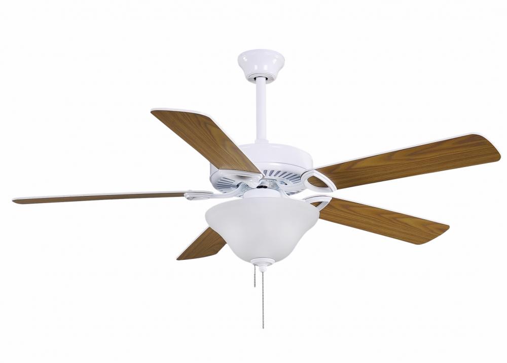 America - 52" Builder Fan - Gloss White Finish - Reversible White/Wood Tone Blades