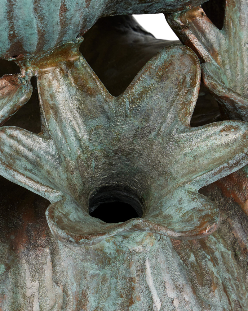 Though it has the artisanal appeal of ceramic or terracotta, the Amsterdam Tulip Vase is made of cast aluminum. Once the creation is removed from the mold, the surfaces of the blossoming vases are treated to create an oxidized patina. Fill it with flowers and this coppery-green vase will be a blossoming show-stopper.