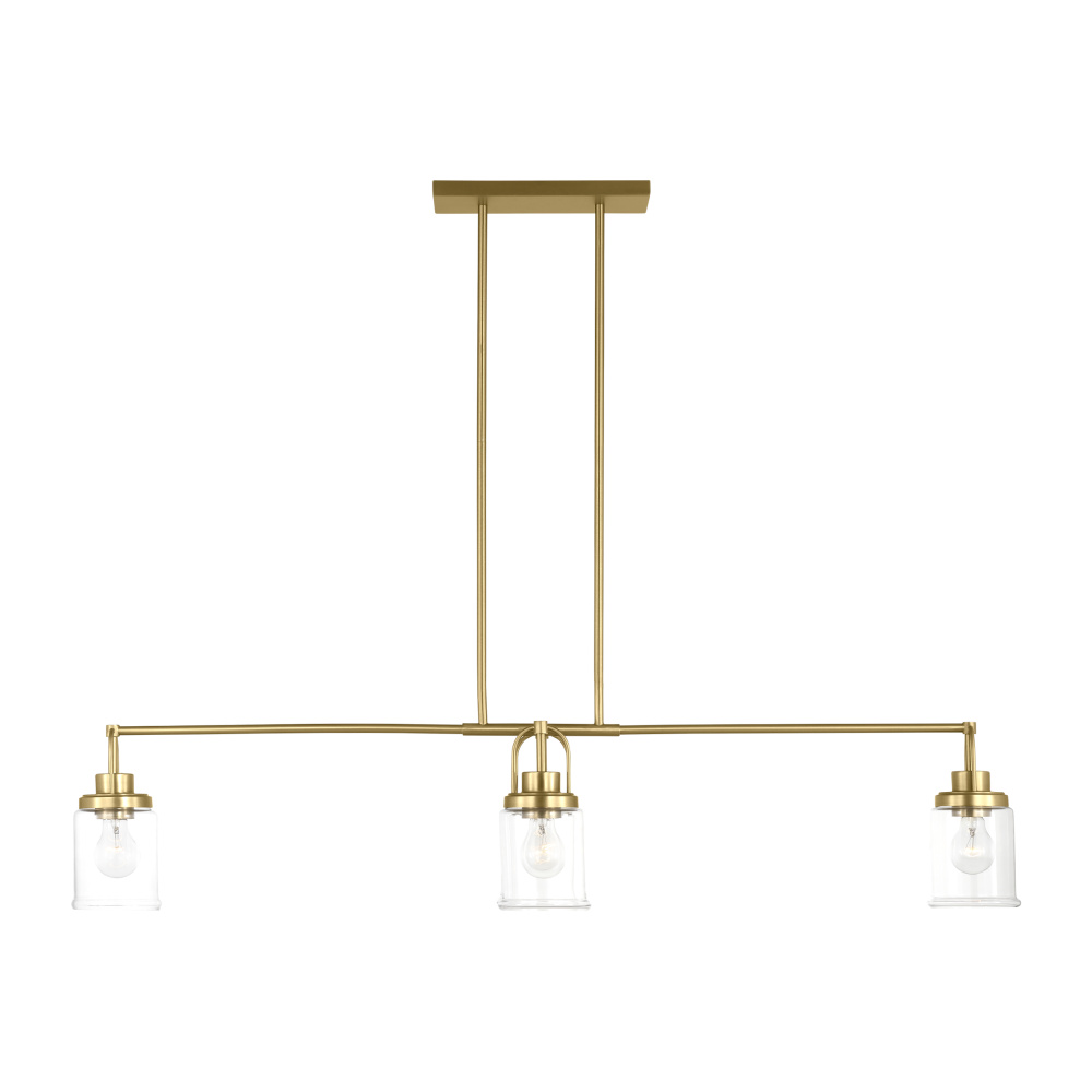 Crafted with Steel in a Satin Brass finish with clear glass shades