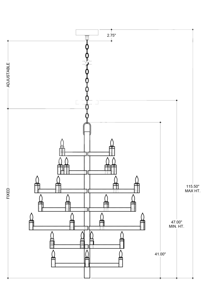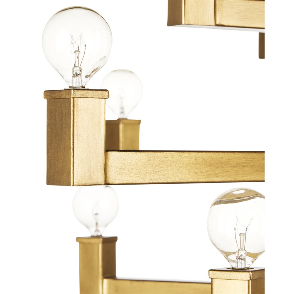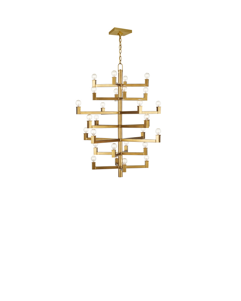 Clean articulated arms with resolute geometries make the big, bold Andre Medium Chandelier a powerful statement that can easily swing from contemporary to transitional styles, and many in between. Made of wrought iron in a brass finish, the gold chandelier will take on other personalities when the shapes of the bulbs are changed. Tall foyers and great rooms with high ceilings are perfect spots for this luminous modern light fixture with 28 lights. Adjustable from 47" to 115.50" with use of included chain/rod kit/cable. If your space calls for a longer drop, additional chain/rods/cable is available for purchase.