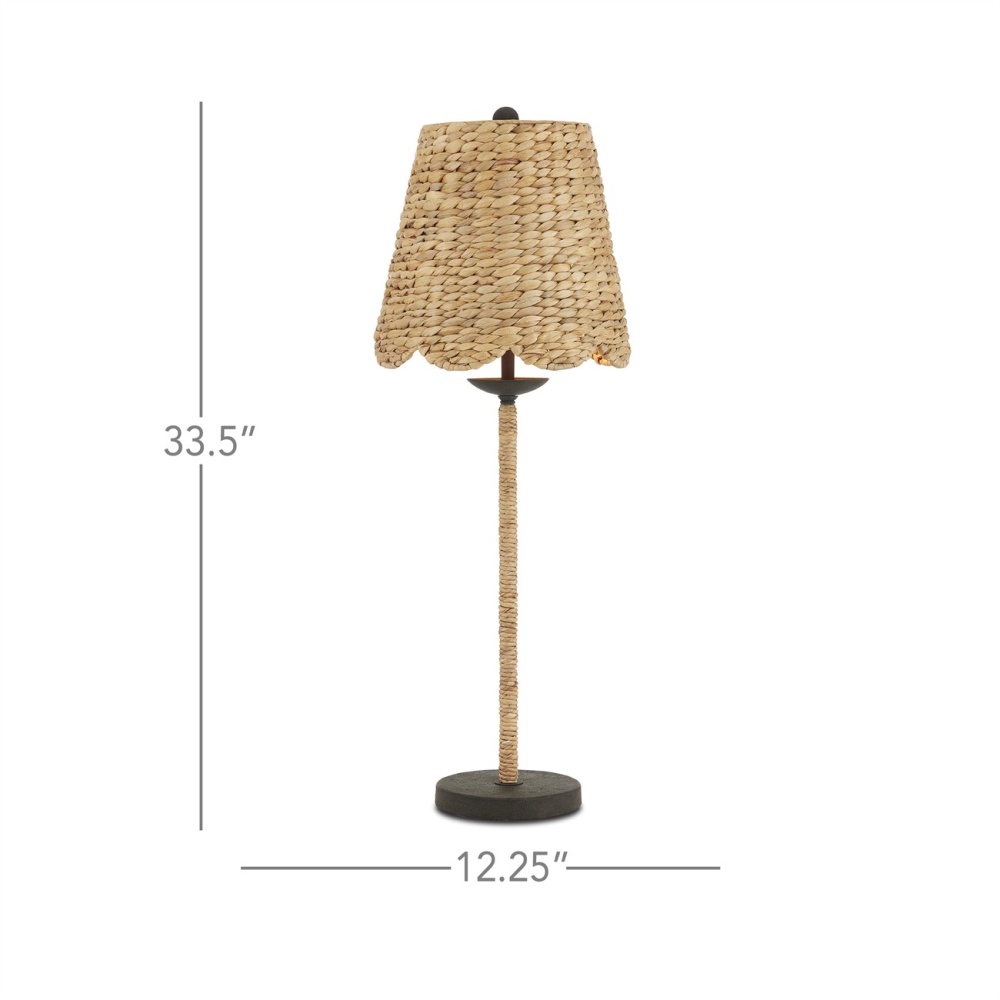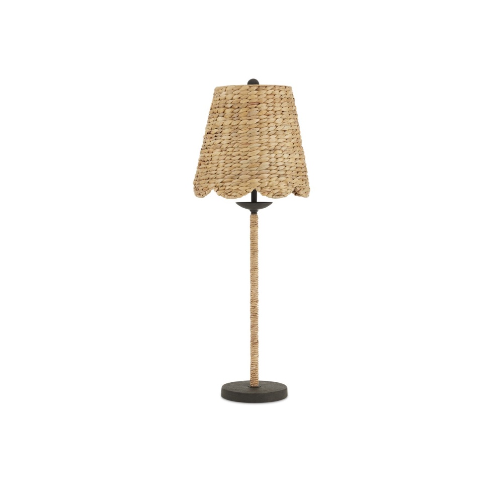 Suzanne Duin, who founded the Houston shop and design studio Maison Maison, conceived the Annabelle Table Lamp. Known for a keen eye in sourcing authentic French antiques and home accessories from around the globe, Suzanne has created a line of woven light fixtures that are handmade by artisans in South Asia. The shade is made of water hyacinth, which brings a textural artistry to the composition. Equally sophisticated is how the thin stem is wrapped in the same natural material. The mole black finish on the woven lamp contrasts the beige tones beautifully.