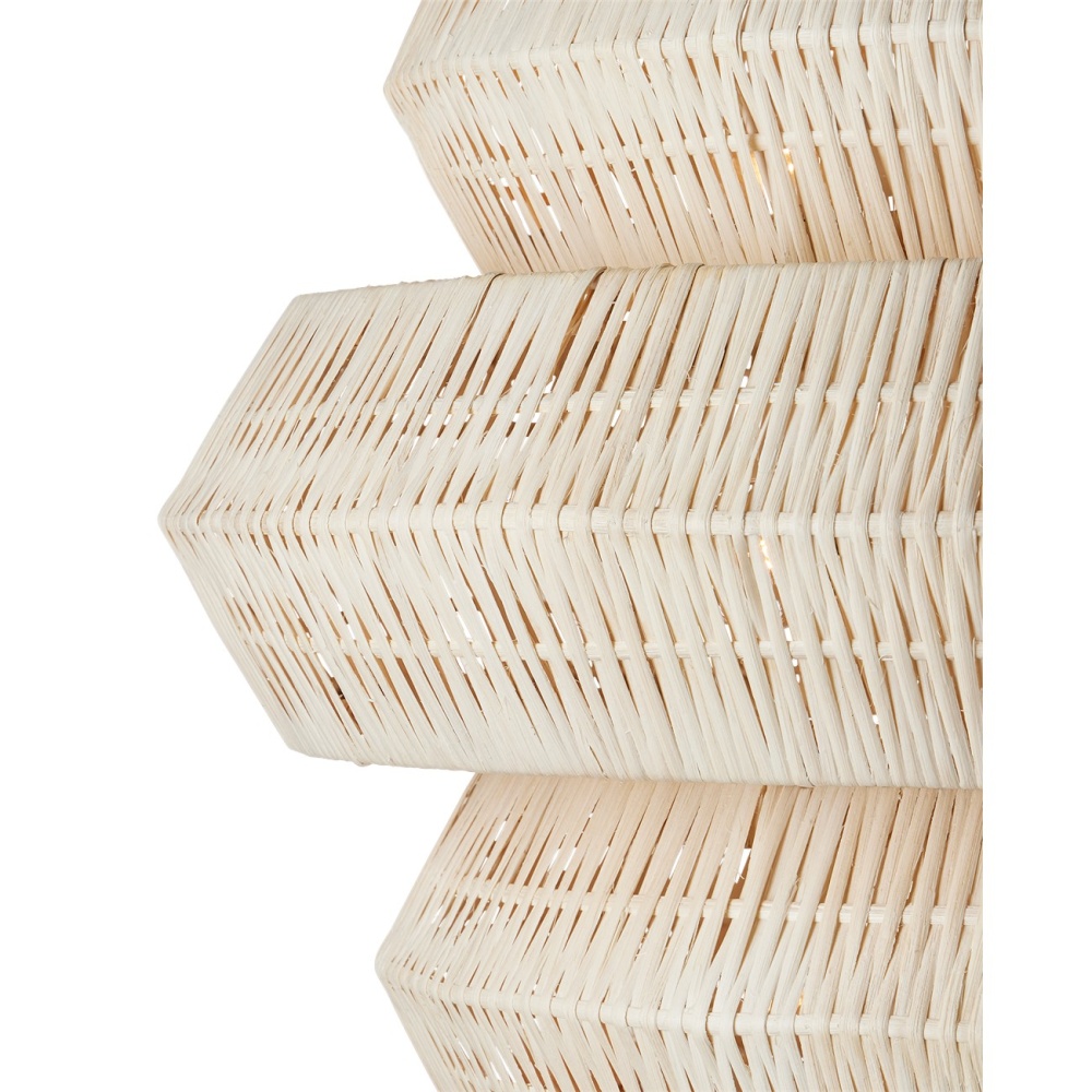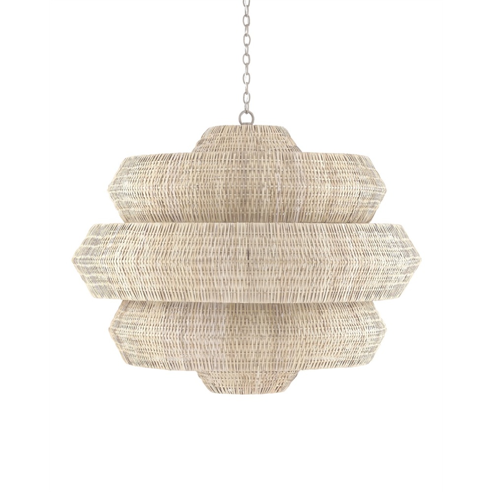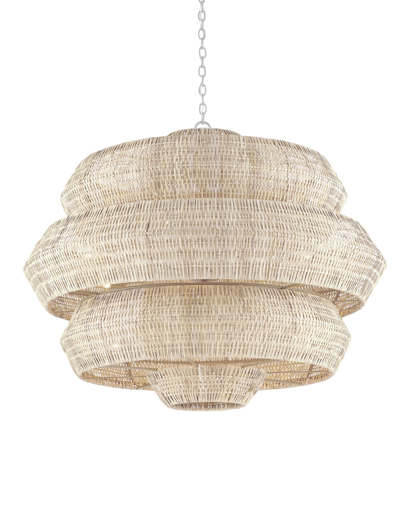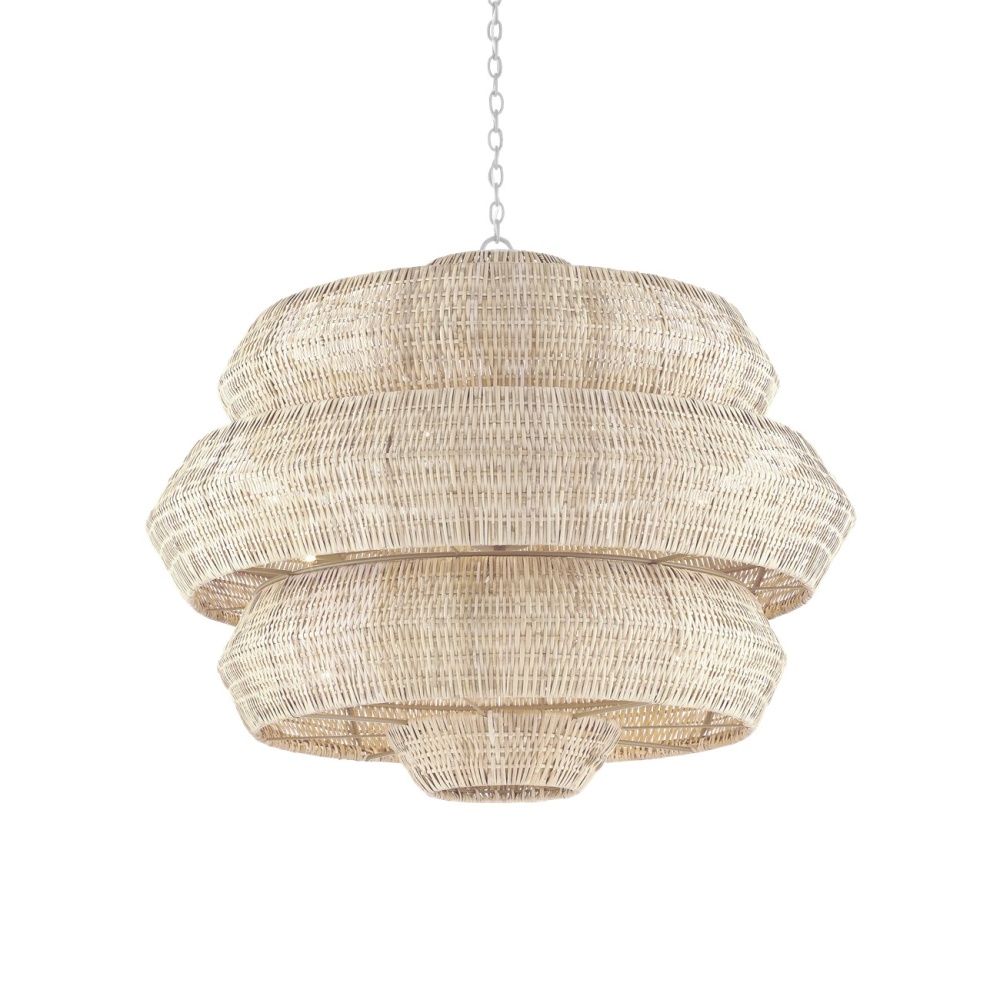 Painstakingly woven by artisans who use traditional techniques, the Antibes Grande White Chandelier is a marriage of artistry and high-quality construction. Natural bleached rattan forms the body of this geometric chandelier shaped by a wrought iron frame in a snow-white finish. This is a large chandelier at 48 inches in diameter. The 18 lights reflect through the tight weave to create subtle patterns when the chandelier is illuminated. Adjustable from 48" to 139.5" with use of included chain/rod kit/cable. If your space calls for a longer drop, additional chain/rods/cable is available for purchase.