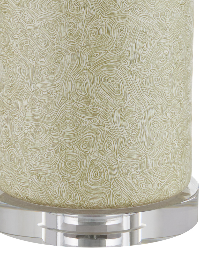 Made of a lively color of turquoise glass, the Aquaviva Table Lamp has a long columnar shape with a perfectly placed bulge as it approaches the optic crystal base on which it stands. The brightness of the base and the matching finial is echoed in the polished nickel finish on the hardware. The elongated shape of the shade is a nice design detail, as its scale is in sync with the height of the body of the blue lamp.