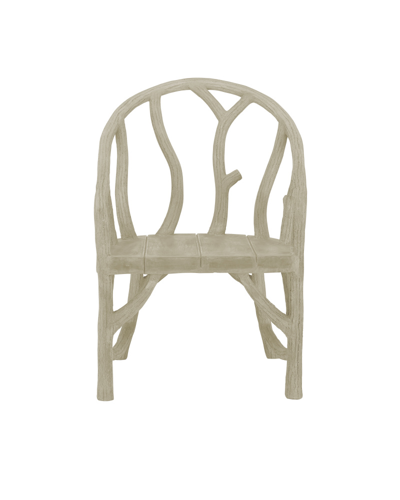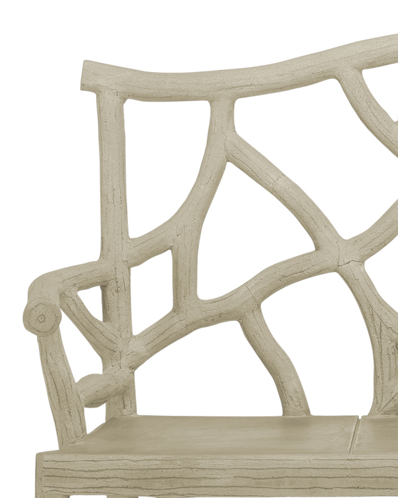 The sturdy Arbor Chair, which is just as durable in the garden as it is indoors, is made in the time-honored artistry of faux bois. The concrete chair has a steel frame covered with cement in the classic rustic style sculpted to look like tree branches. There are several pieces in the Arbor family of furnishings.
