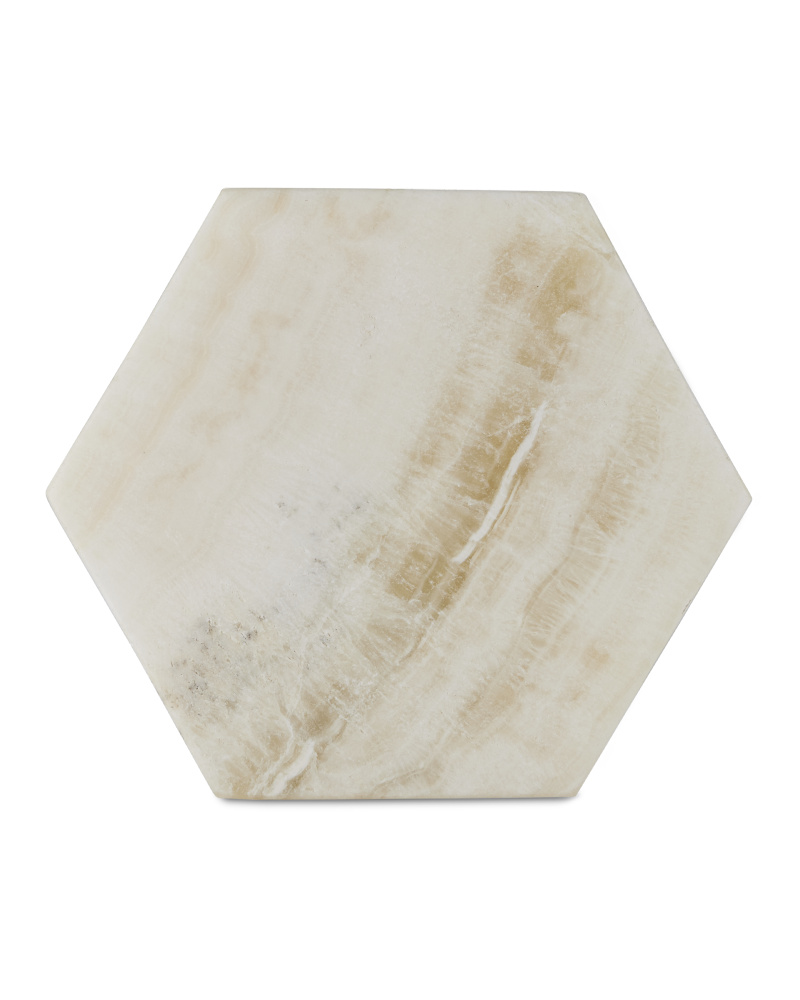 The Arco Onyx Hexagon Box is a beautifully modern decorative accessory made of onyx. The clean lines of the box create a contemporary profile, while the natural markings of the stone bring it a tremendous uptick in personality. This piece continues the exploration of unique materials in boxes with this set of contemporary accessories. There will be variations from piece to piece given the material from which it is made.