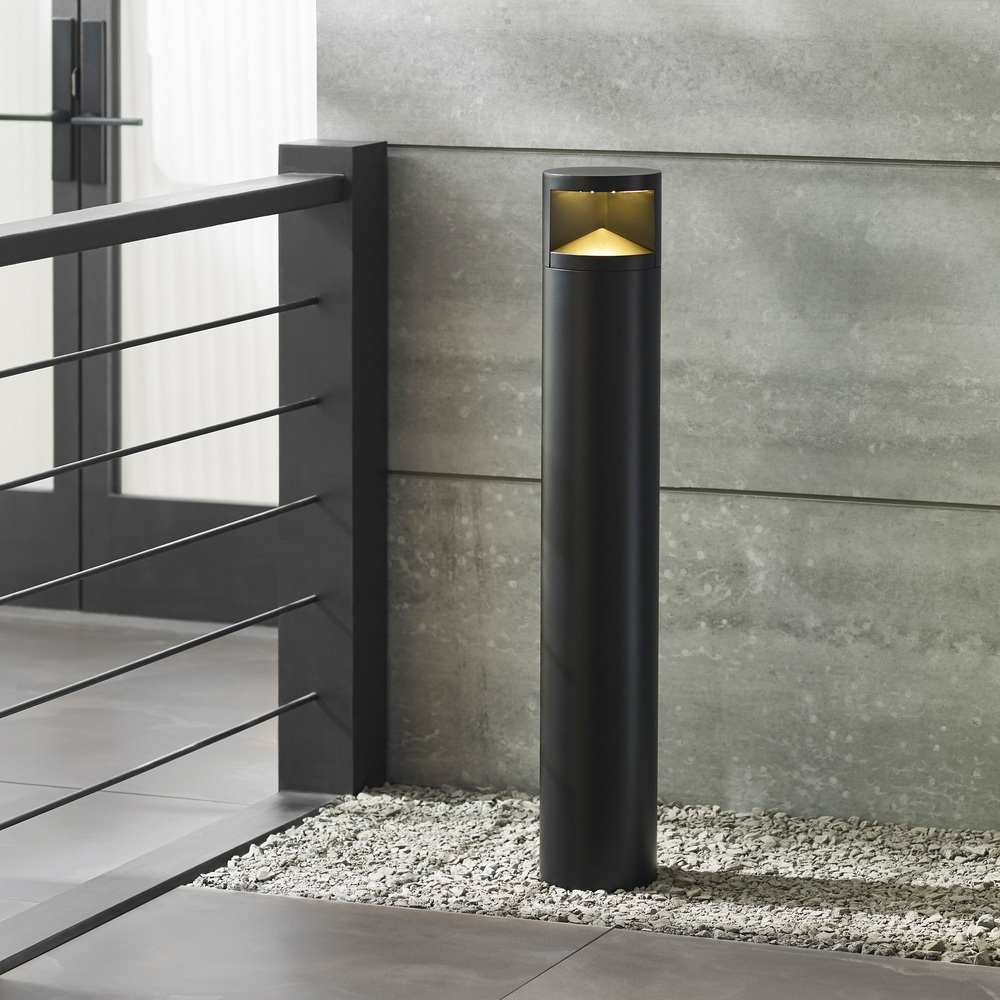 The Arkay Three LED bollard by Sean Lavin features an understated, contemporary design for outdoor lighting that blends beautifully with surrounding architecture and landscape details. The Arkay Three bollard is topped with a band of light that aims symmetrical illumination downward to create controlled pools of light, ideal for outdoor path and campus illumination. Available in modern finish options.