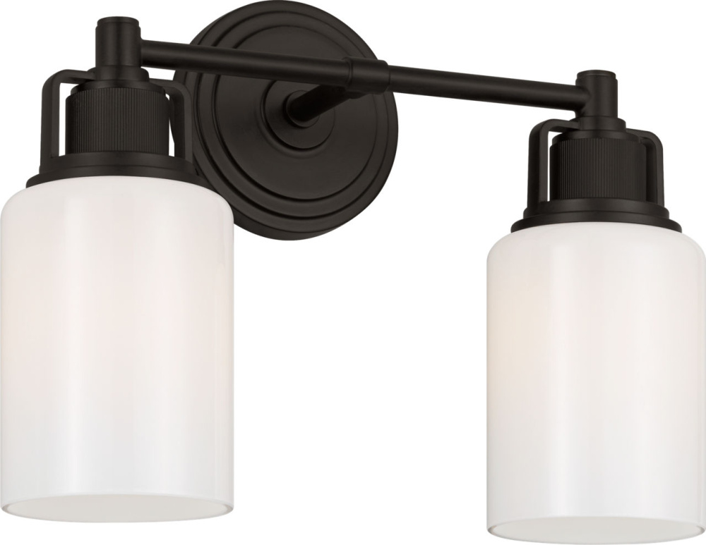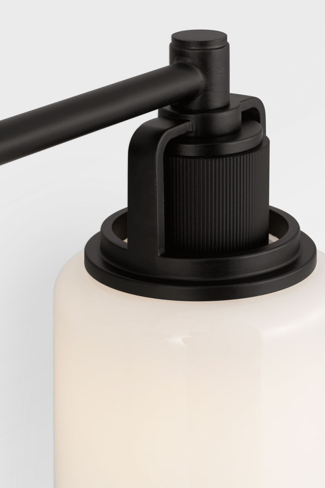 The Ashford 14" Vanity by Chapman & Myers offers a balanced expression of the collection’s architectural clarity and knurled detailing. Its square arch bracket and circular collar mount a white cylindrical glass shade, while the open collar reveals the vertically knurled socket cover—designed to coordinate seamlessly With a range of bath fittings. With a mid-size profile, the 14" vanity is ideal for single vanities, guest bathrooms, or transitional layouts, where its refined proportions and industrial elegance bring cohesion and quiet sophistication to the space.