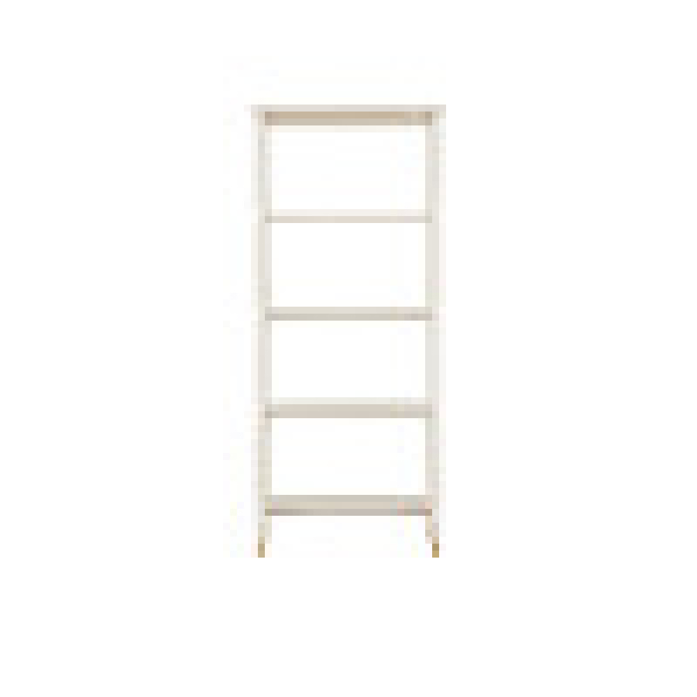 Made of mahogany and oak in a mix of off white and fog finishes, the Aster White Etagere was inspired by an antique from the Winterthur Museum. The gray and white etagere has three shelves and is fitted with brass ferrules that are warm accents in a brass finish.