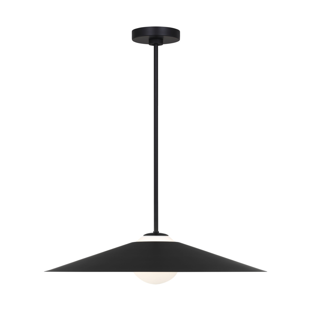 Crafted with Steel in a Midnight Black finish with midnight black steel shade and white opal etched glass shade