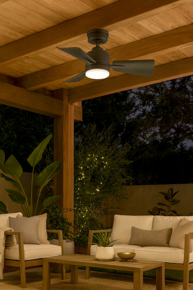 Part of the Regency Series, Atom's compact modern profile complements functionality with classic finishes to perfectly accentuate smaller spaces. Its damp-rated design is suitable for both interior and covered outdoor areas. Dimmable Integrated LEDs emit warm, even light, creating a comfortable atmosphere. Atom mounts directly to its canopy or with the included downrod for dual mount capability. This will result in an overall fan height of 10" and a ceiling-to-blade height of 5 3/4