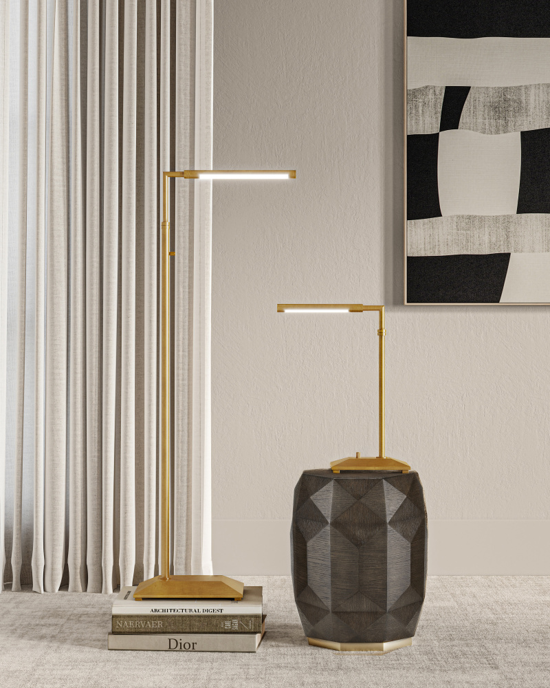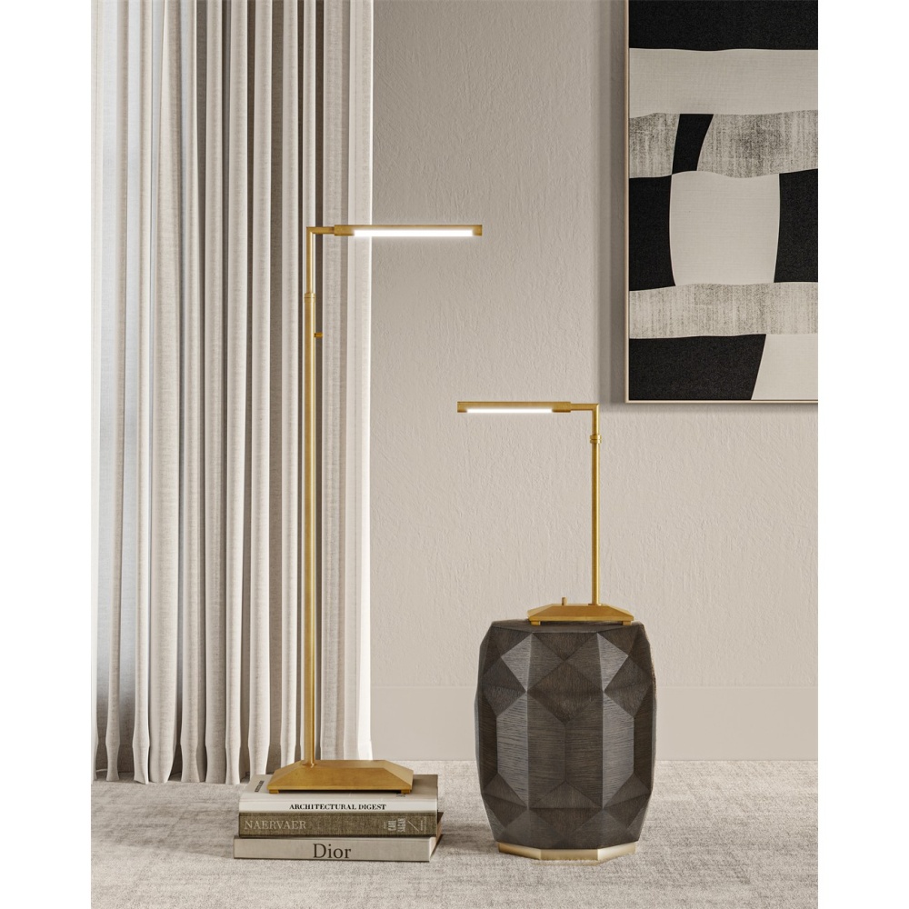 The Autrand Brass Floor Lamp is a nimble fixture that focuses illumination wherever it is needed most, as it swivels from side to side and the tubular shade on the top arm can be maneuvered to cast light up, down, or right to left. Made of metal in an antique brass finish, the simple lines of this gold floor lamp make it great for any number of interior styles, including contemporary. The fixture has a dimmer switch and is lit with integrated LED technology.