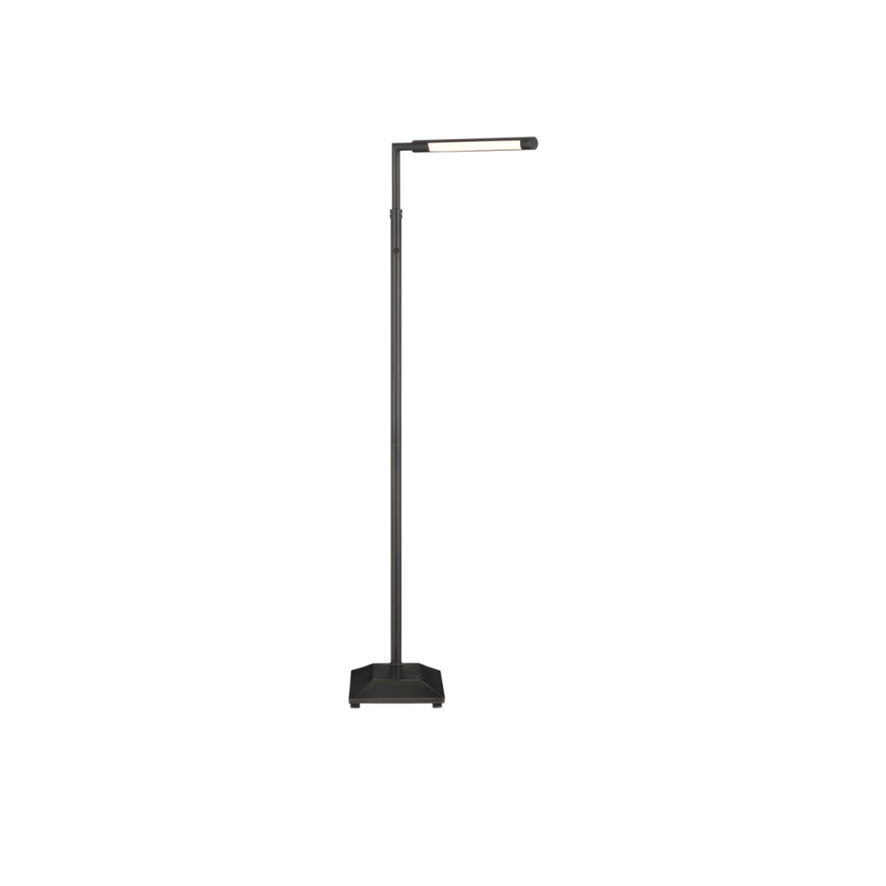 The Autrand Bronze Floor Lamp is a nimble fixture that focuses illumination wherever it is needed most, as it swivels from side to side, and the tubular shade on the top arm can be maneuvered to cast light up, down, or right to left. Made of metal in an oil-rubbed bronze finish, the simple lines of this floor lamp make it great for any number of interior styles, including contemporary. The fixture has a dimmer switch and is lit with integrated LED technology.
