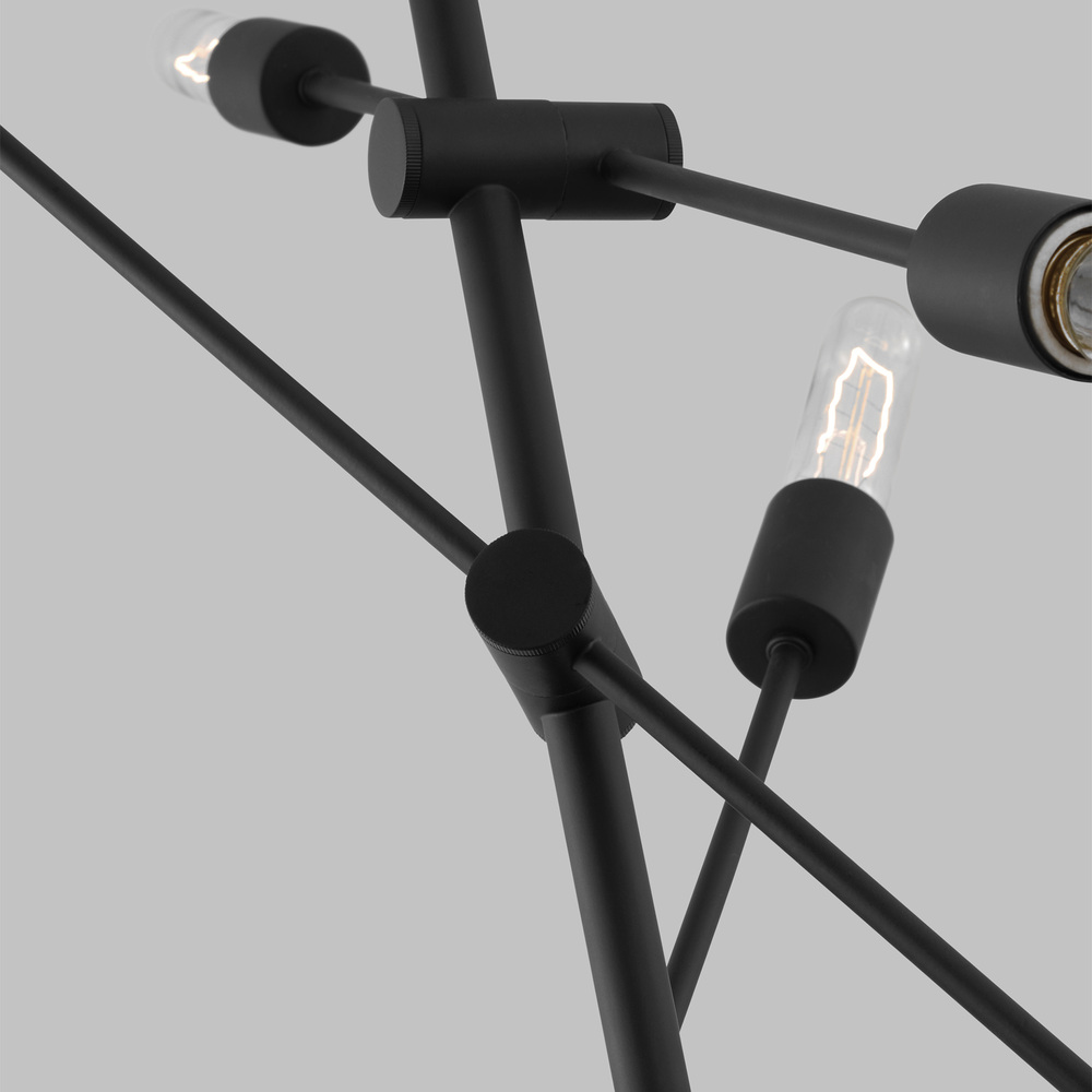 Axis is a simple and refined industrial design where form and function are the design elements. Fully articulating arms make this a truly versatile collection. The arms meet at fully pivotable mechanisms, arms can be adjusted before or after the fixture is installed, to fit a tall foyer or have a low and wide horizontal chandelier.
